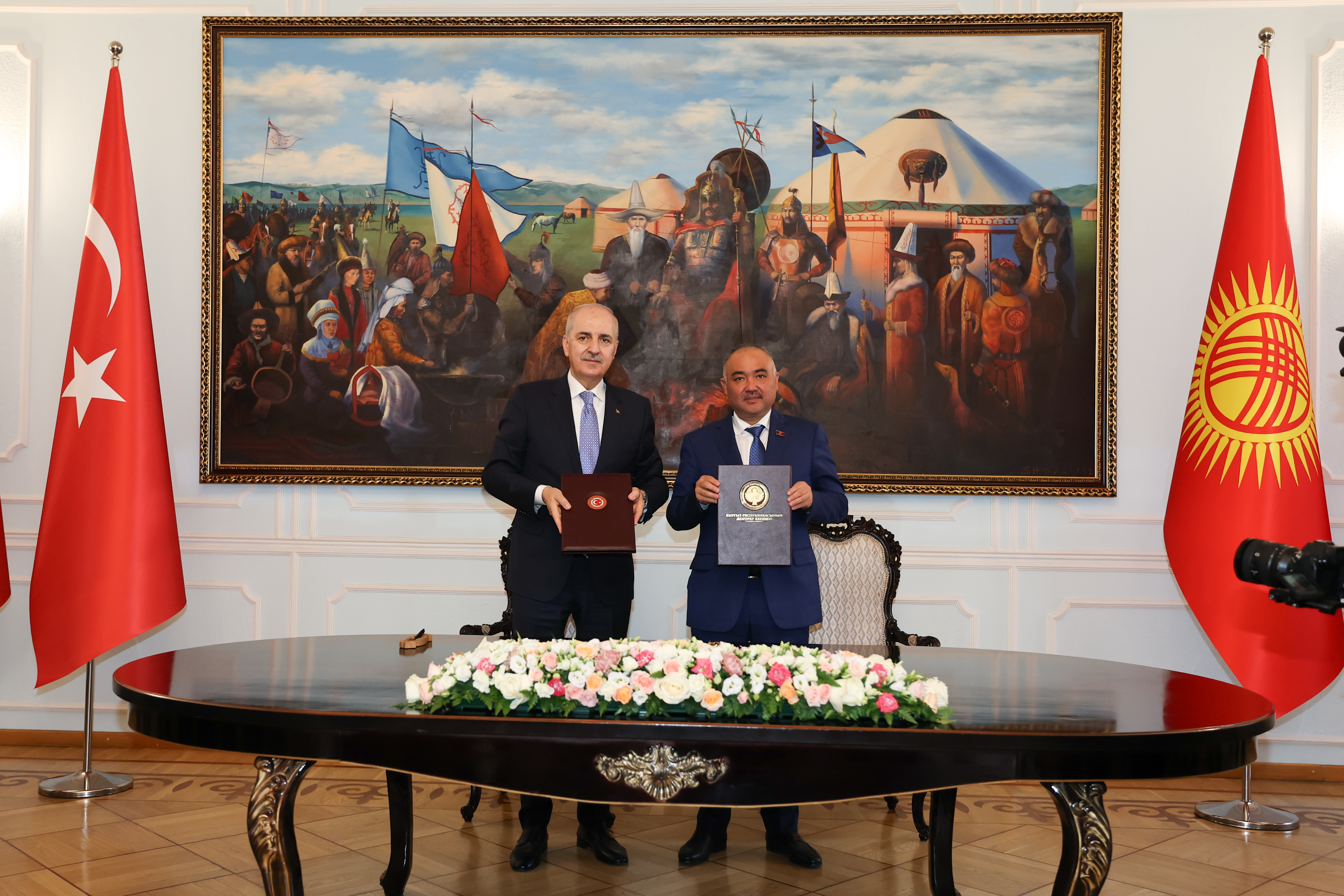 Konuşmaların ardından Kurtulmuş ve Turgunbek Uulu, Türkiye Büyük Millet Meclisi ile Kırgızistan Jogorku Keneşi arasındaki iş birliği protokolünü imzaladı.