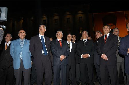 Konukları salonun girişinde karşılayan Arınç, daha sonra üzerinde ''85. Milli Egemenlik Yılı'' yazısı bulunan bir pasta kesti. Salonda konukları ile sohbet eden Arınç, bahçeye çıkarak havai fişek gösterisini izledi.