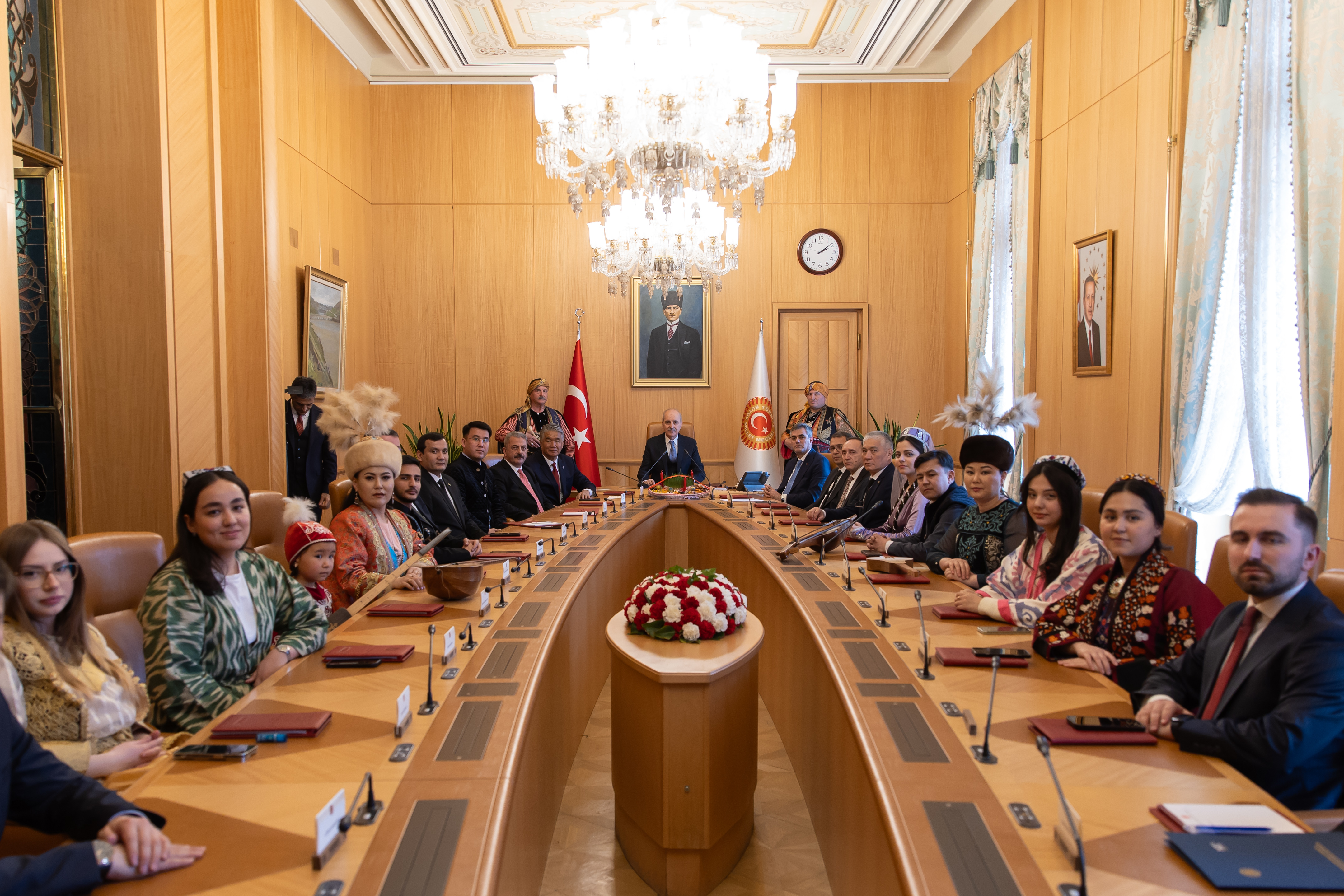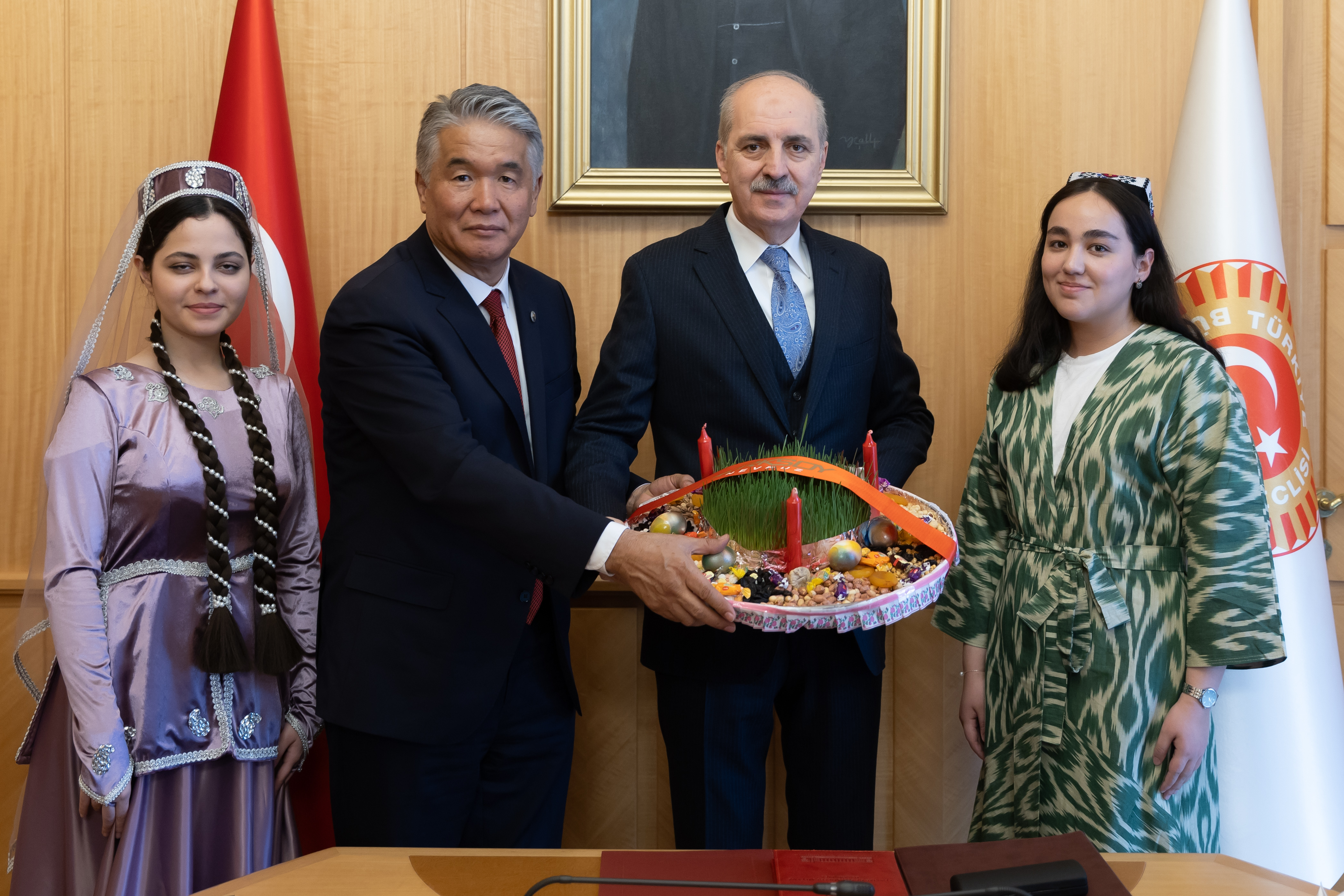 Kurtulmuş, Meclis’te, 21 Mart Nevruz Bayramı dolayısıyla Uluslararası Türk Kültürü Teşkilatı (TÜRKSOY) Genel Sekreteri Sultan Raev ile üye ülkelerin kültür ve sanat elçilerinden oluşan heyeti kabul etti.