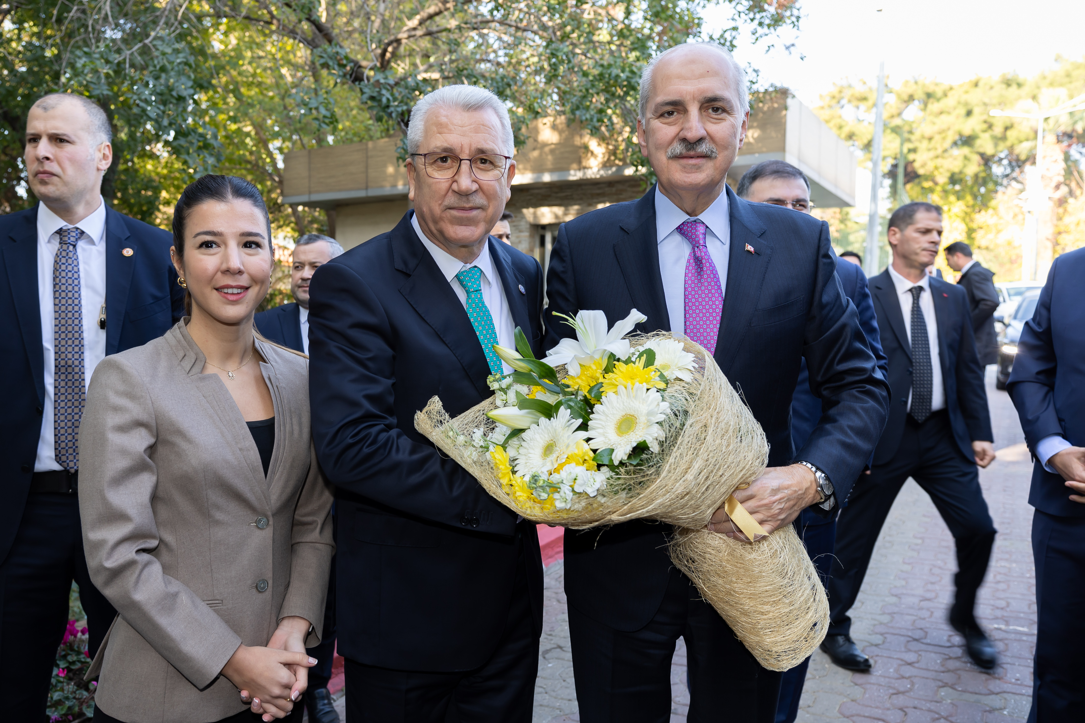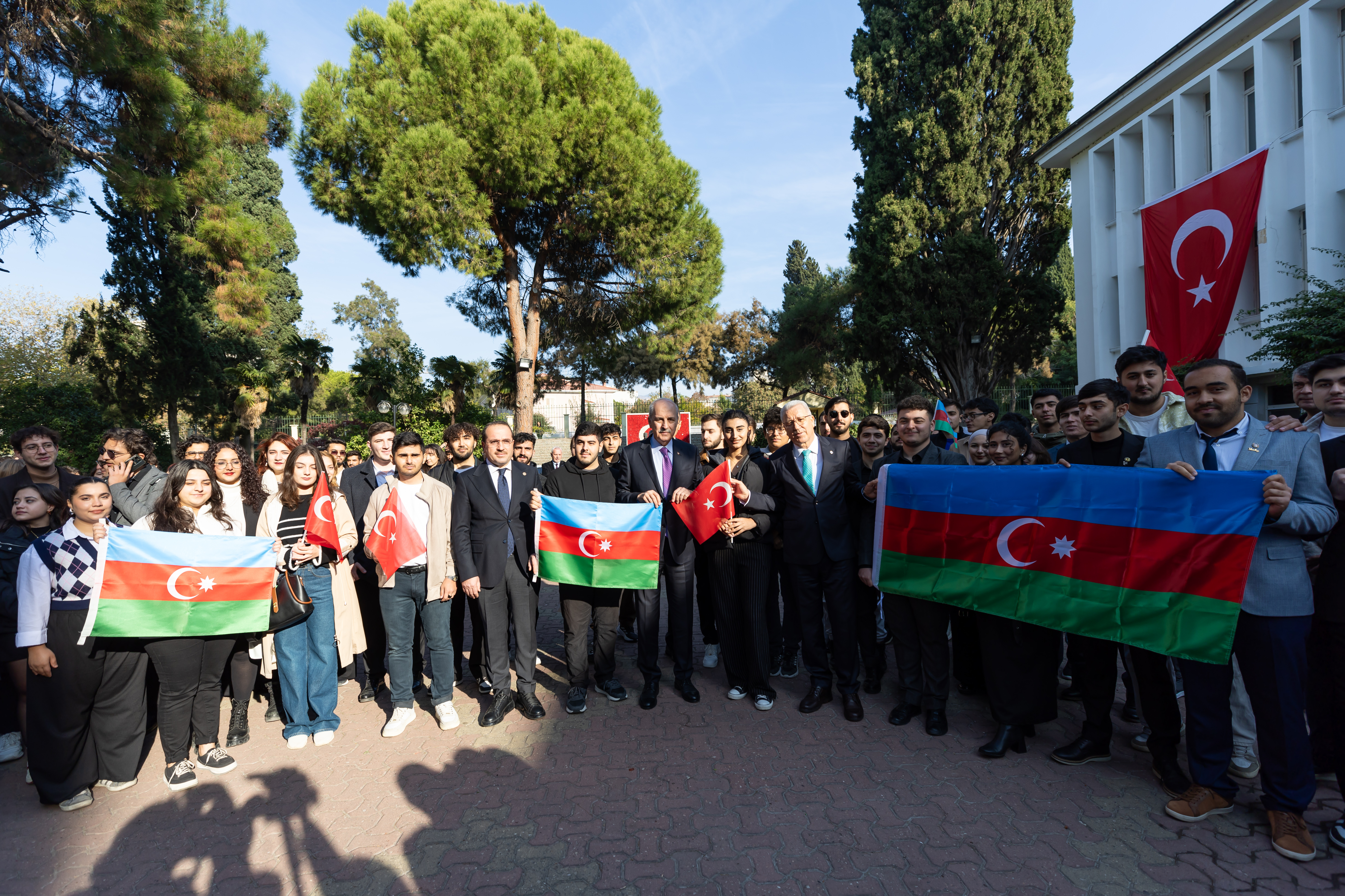 TBMM Başkanı Kurtulmuş, Ege Üniversitesi Rektörlüğünü de ziyaret etti. Rektör Prof. Dr. Necdet Budak ile öğretim üyeleri ve öğrenciler tarafından karşılanan Kurtulmuş, Rektörlük önünde kendisini bekleyen Azerbaycanlı öğrencilerle de sohbet etti.