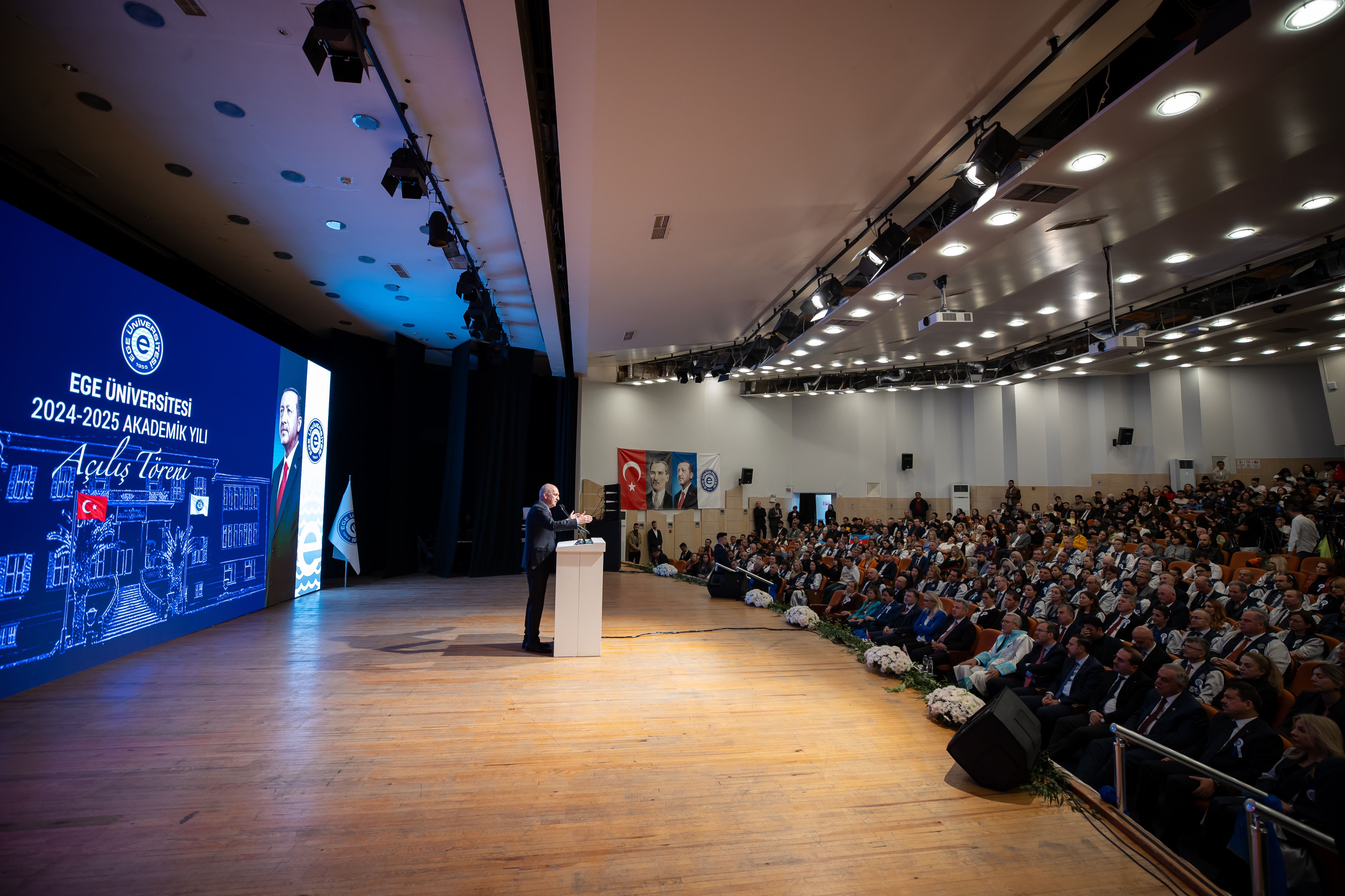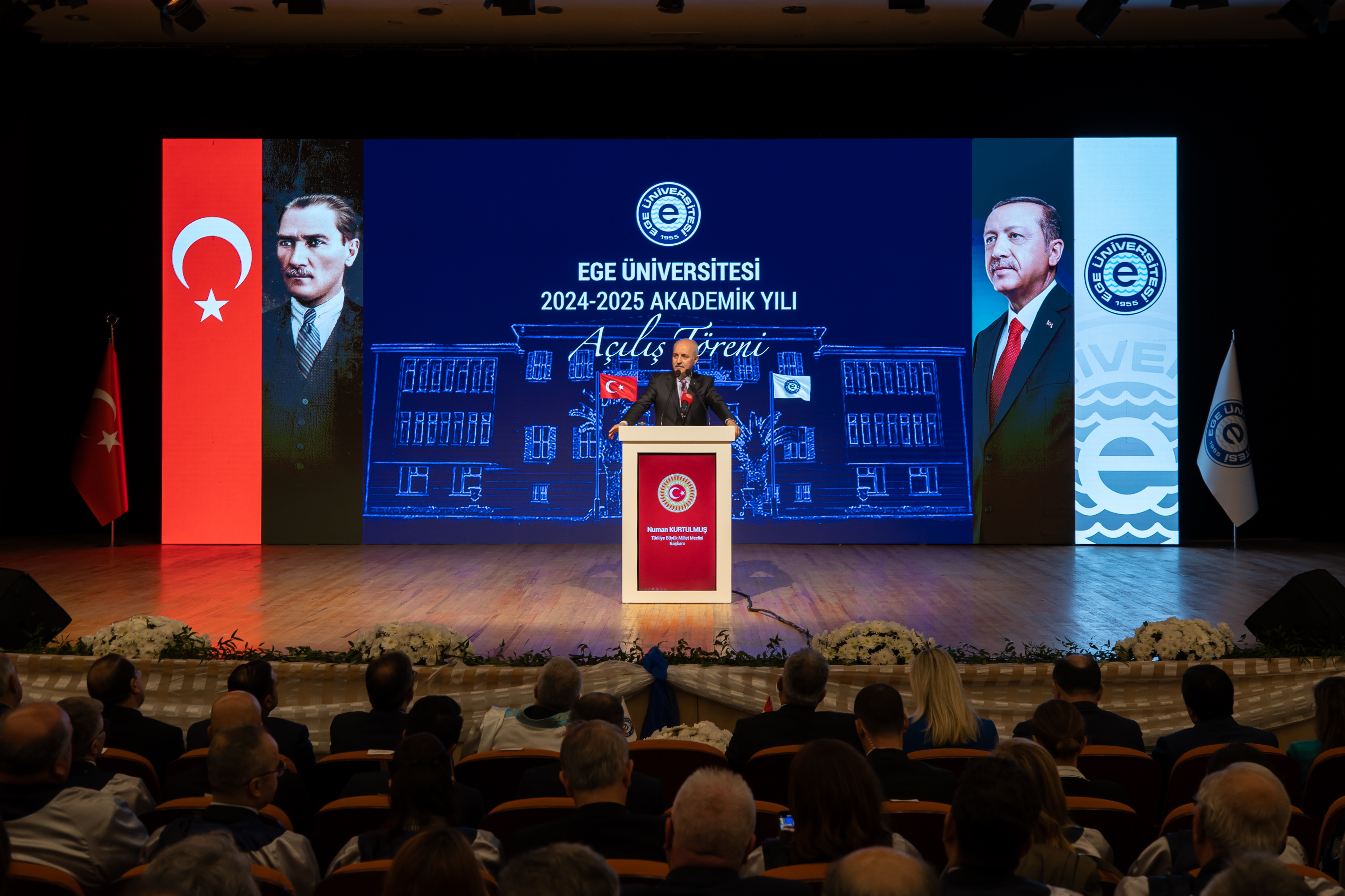 Meclis Başkanı Kurtulmuş, Ege Üniversitesi 2024-2025 Akademik Yılı Açılış Töreni’nde yaptığı konuşmada, üniversitelerin Türkiye'nin geleceğinin teminatı olan, ülkenin gelişmesinin ve kalkınmasının, dünyayla yarışabilmesinin en önemli merkezlerinden birisi olduğunu söyledi.