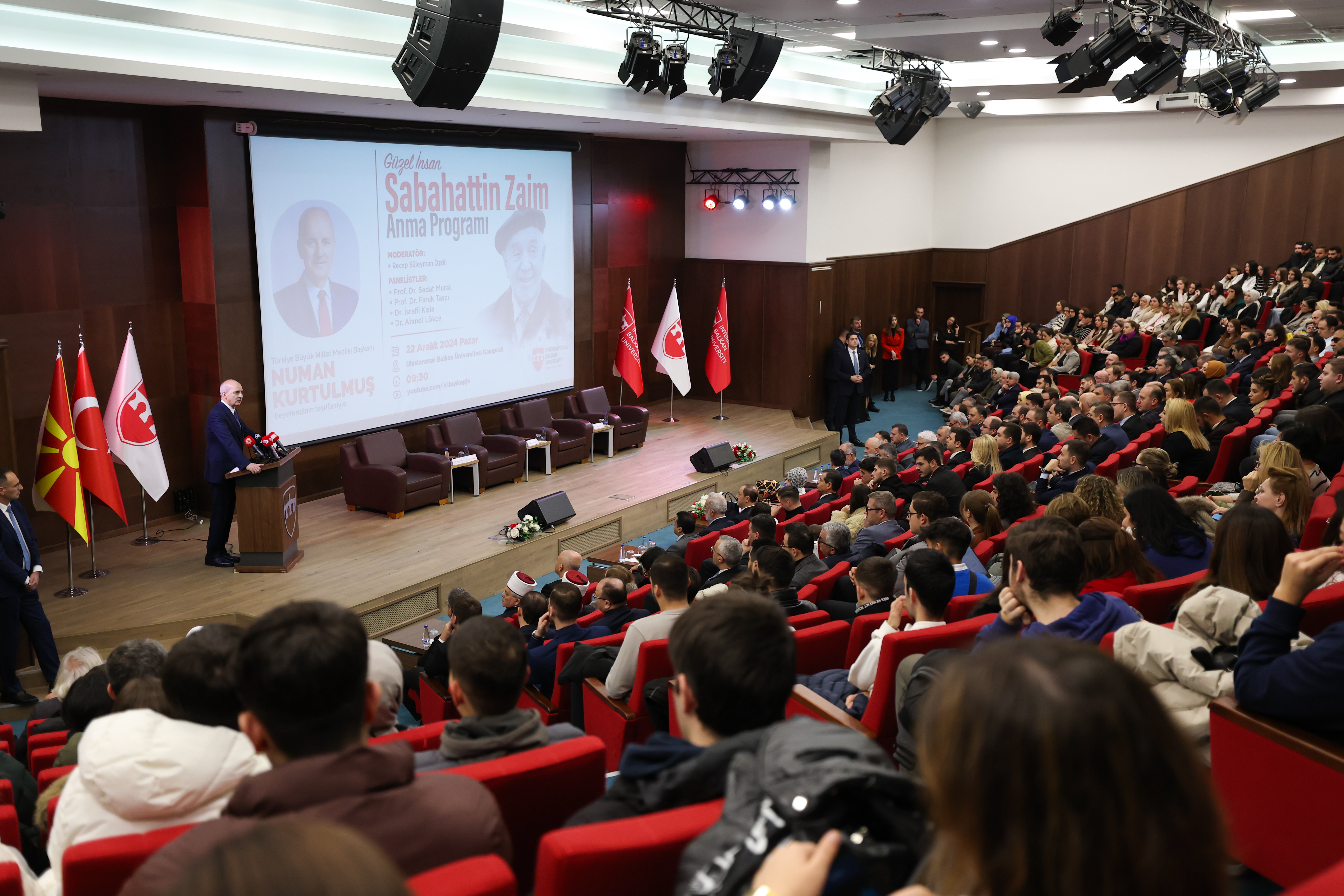 Kurtulmuş, Kuzey Makedonya'nın başkenti Üsküp'teki Uluslararası Balkan Üniversitesi'nde düzenlenen "Sabahattin Zaim Anma Programı"nda konuştu.