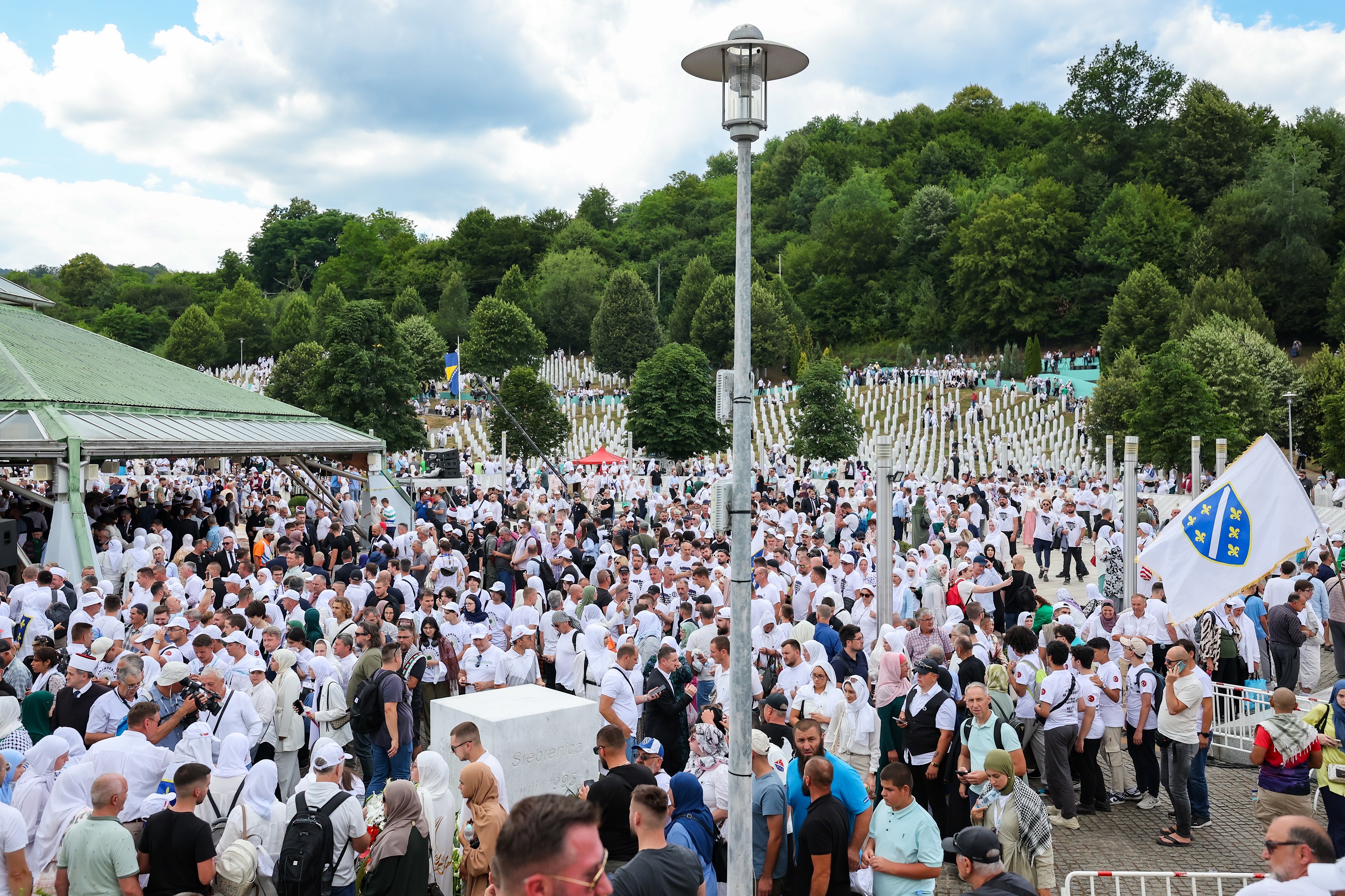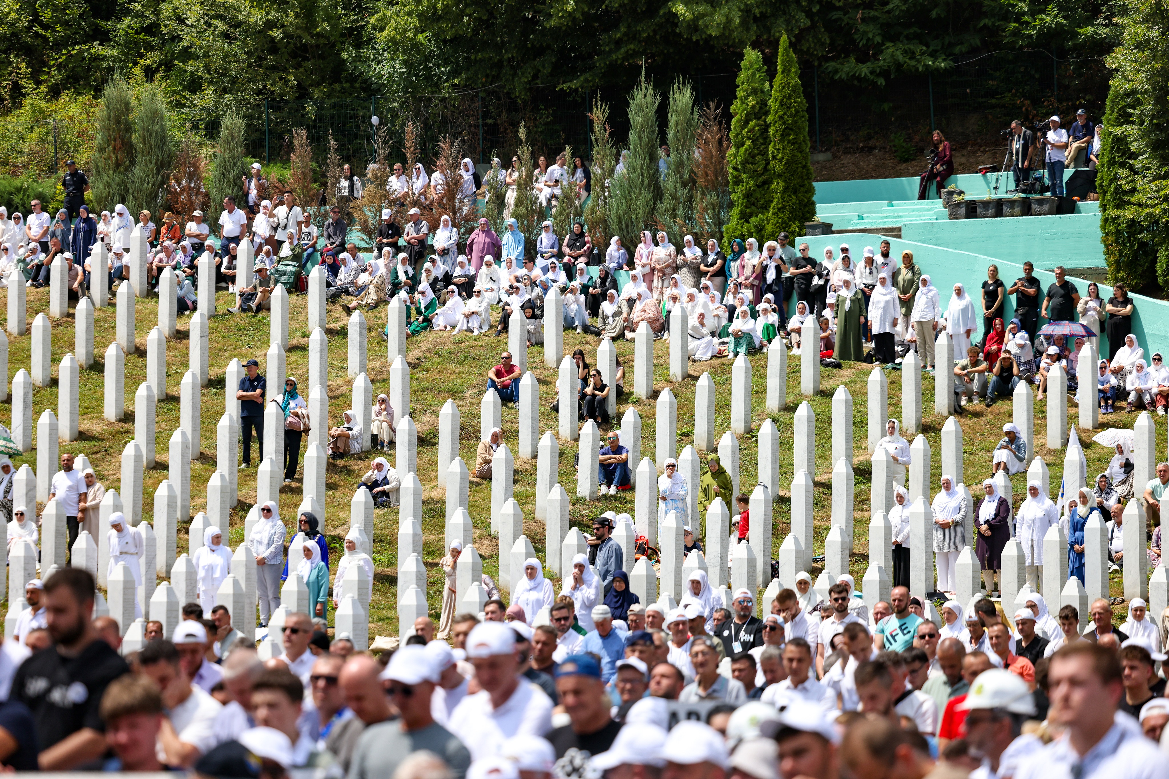 Avrupa'da İkinci Dünya Savaşı'nın ardından yaşanan en büyük insanlık trajedisi kabul edilen ve Sırp güçleri tarafından en az 8 bin 372 Boşnak sivilin acımasızca katledildiği soykırımda kimlik tespiti yapılan 7 kurban için Potoçari Anıt Mezarlığı'nda tören düzenlendi.