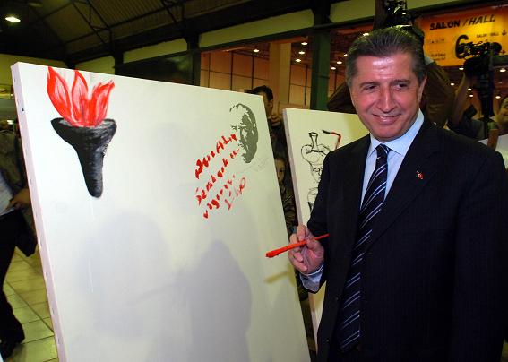 kitabını imzalayarak hediye etti. Vural Savaş, Köksal Toptan'ın stanttan