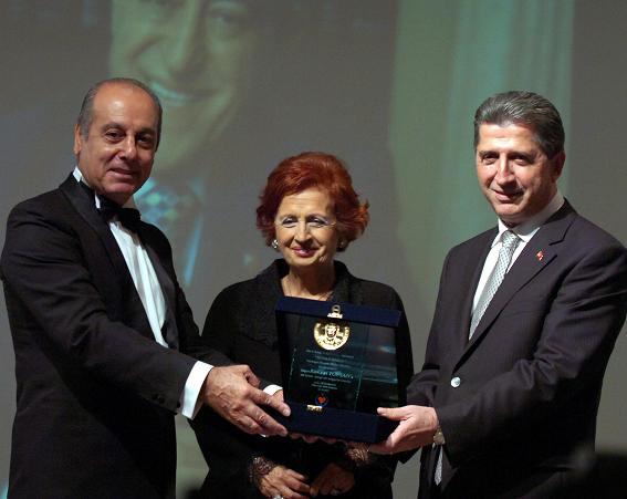 Türkan Sabancı, konuşmasını, eşinin yardımseverliğe atıfta bulunan ''Olma keser gibi rab bena hep bana, ol testere gibi bir sana bir bana'' sözüyle bitirdi.