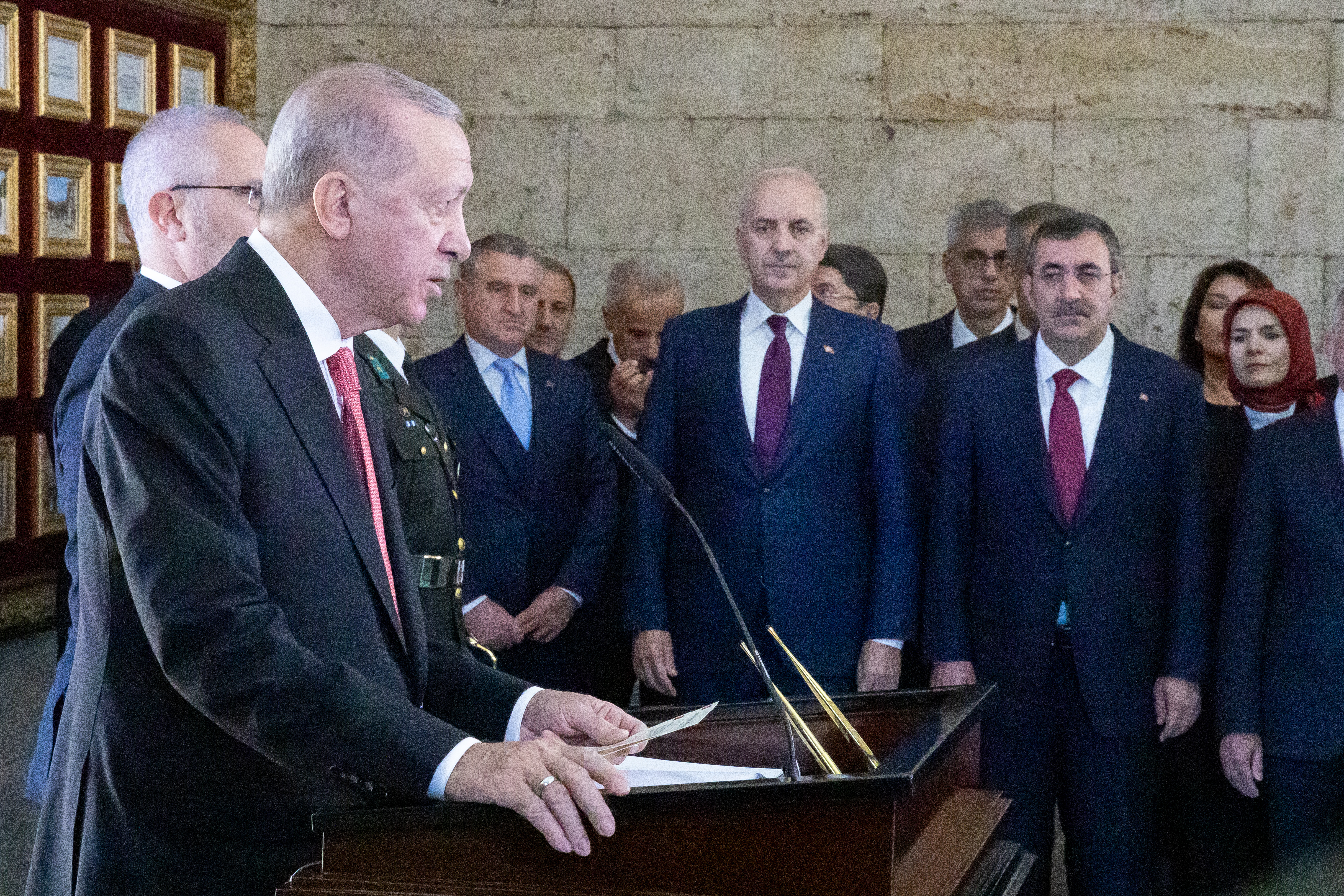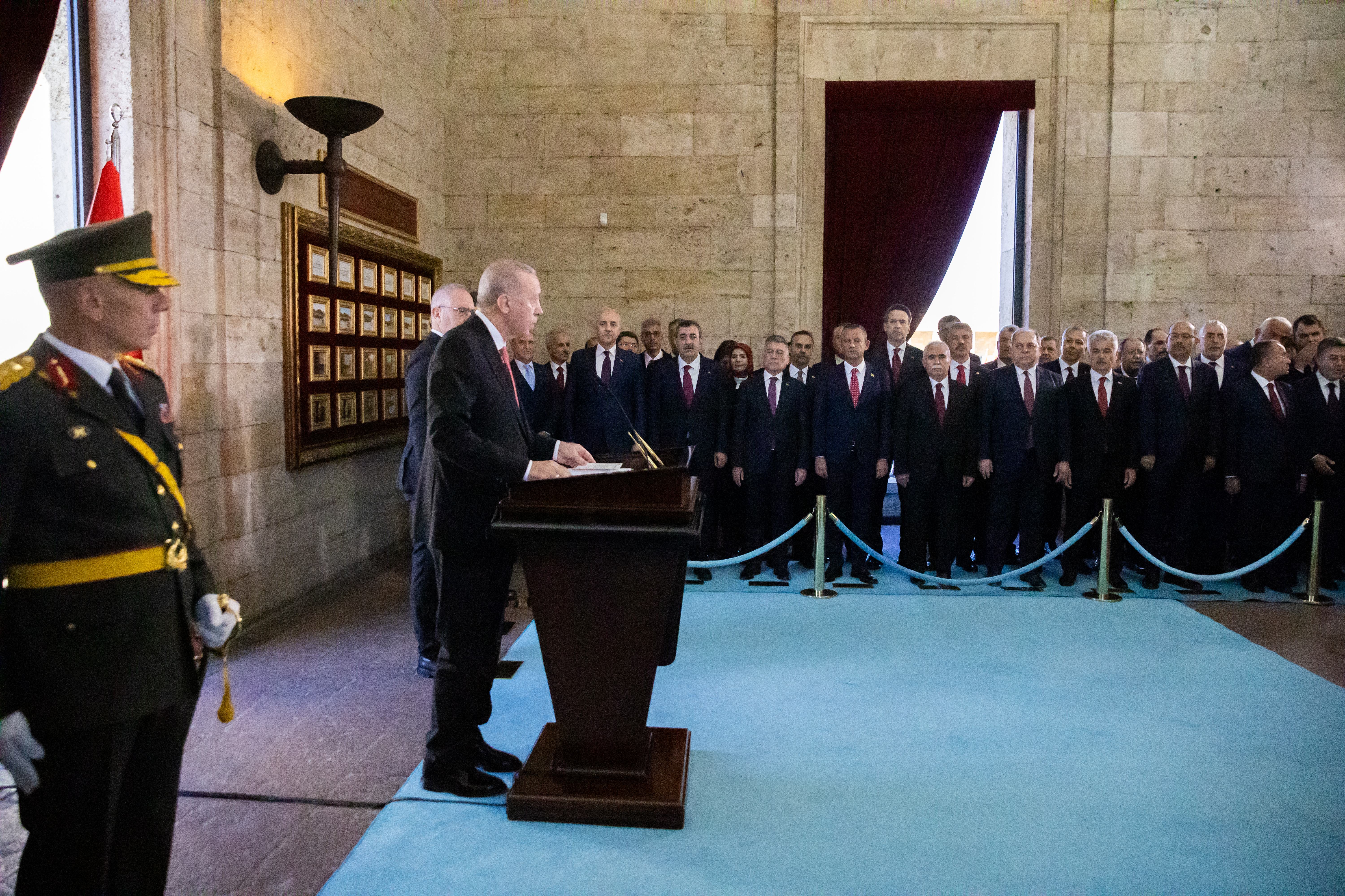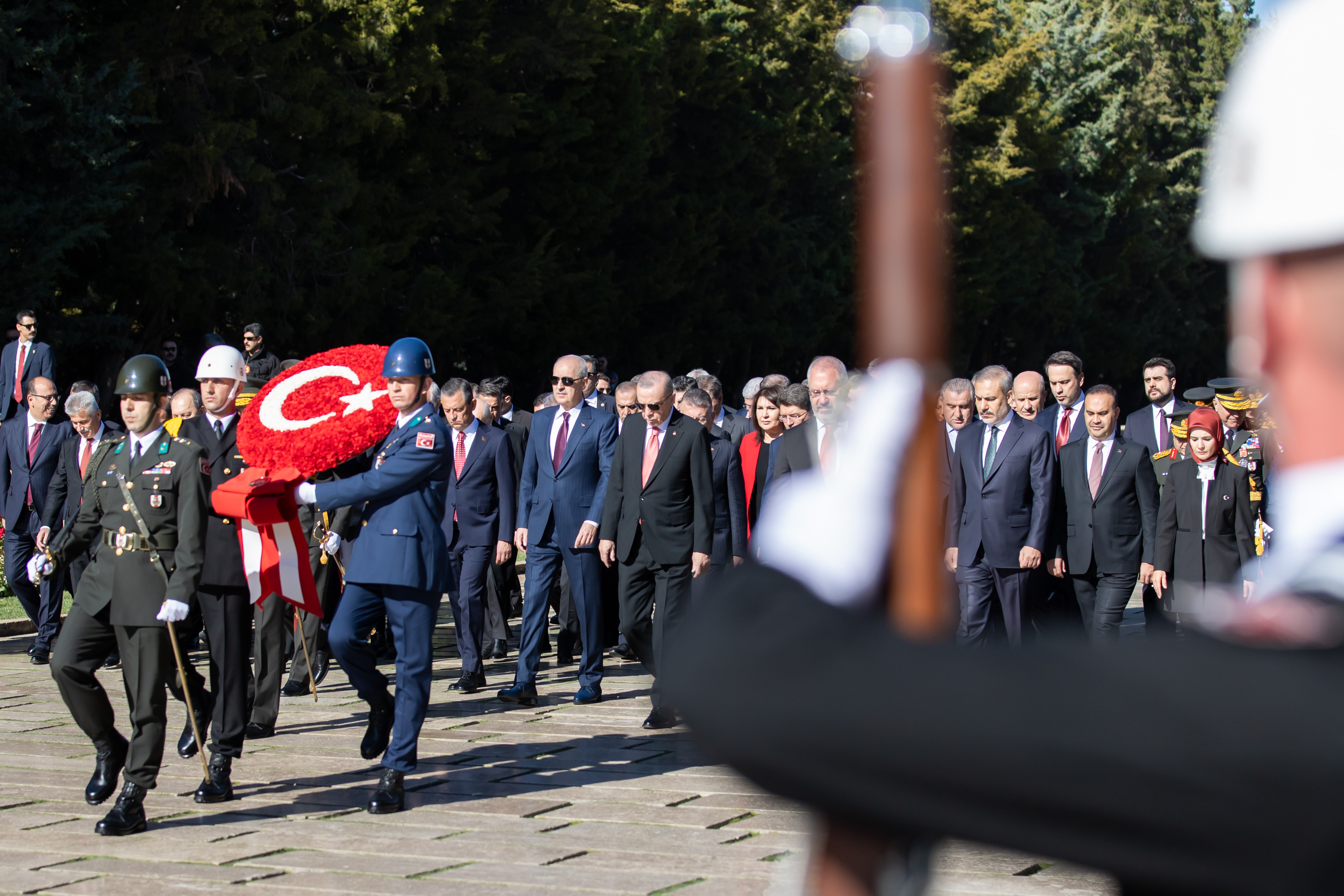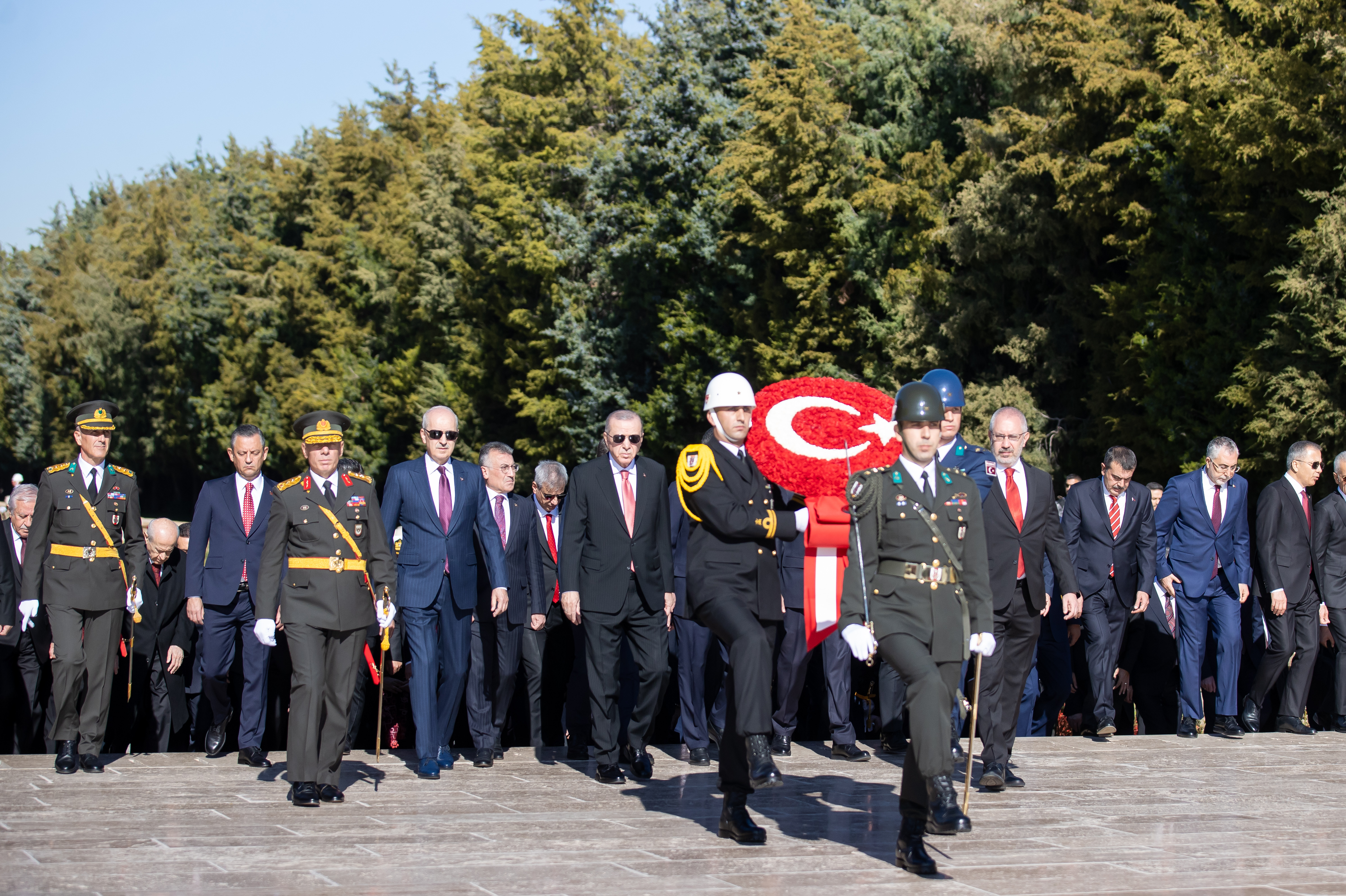 Türkiye Cumhuriyeti'nin 101. kuruluş yıl dönümü dolayısıyla Cumhurbaşkanı Recep Tayyip Erdoğan başkanlığındaki devlet erkanı, Anıtkabir'i ziyaret etti.