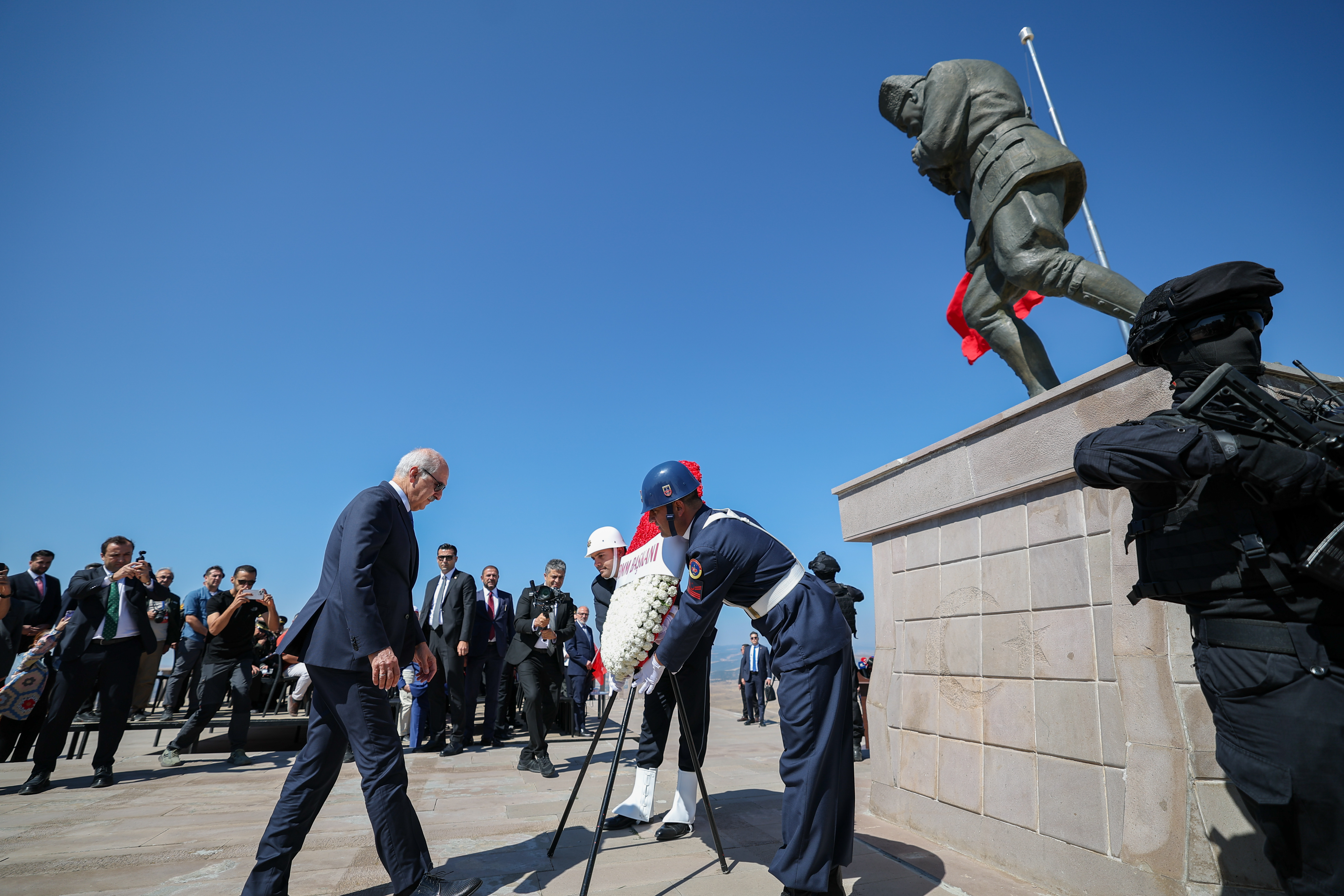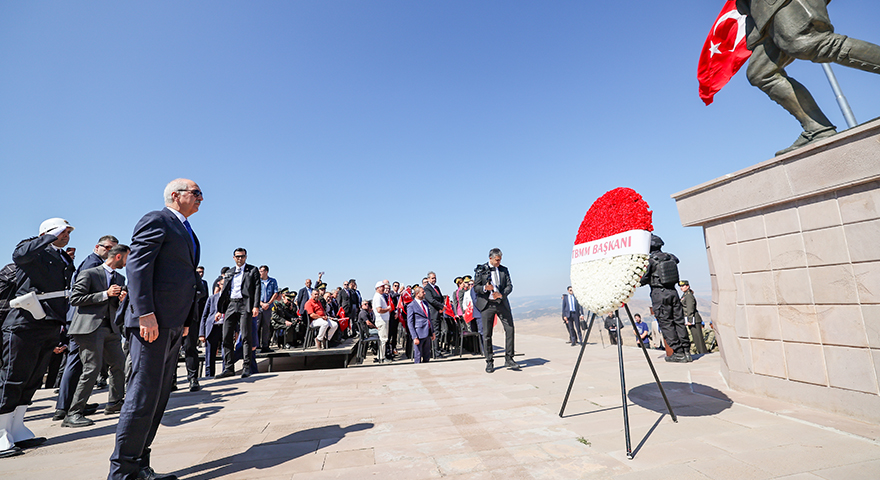 TBMM Başkanı Kurtulmuş, Kocatepe’deki törende, üzerinde "TBMM Başkanı" yazılı kırmızı beyaz karanfillerden oluşan çelengi Başkomutan Mustafa Kemal Anıtı'na bıraktı. Saygı duruşunda bulunulması ve İstiklal Marşı'nın okunmasıyla Türk bayrağı göndere çekildi, askerler tarafından saygı atışı gerçekleştirildi.