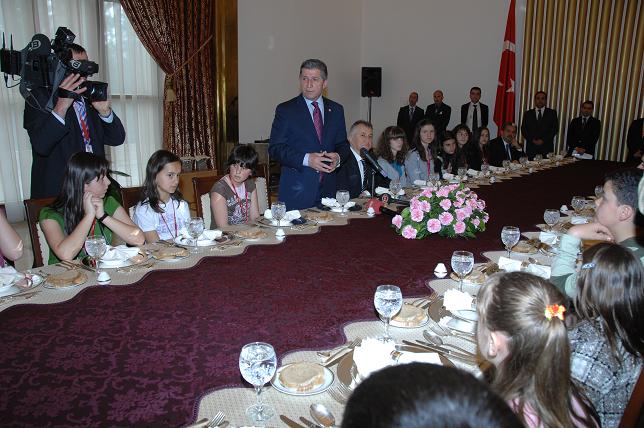 Toptan, Makedonya ve Kosova'dan gelen öğrencilerle yemekte bir araya