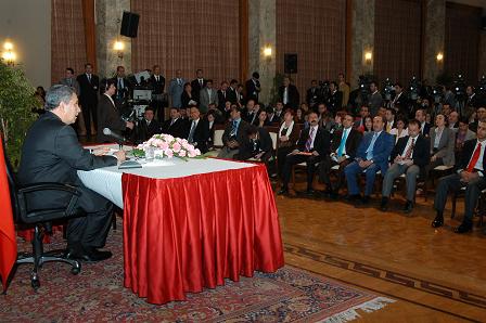 TBMM Başkanı Bülent Arınç, Cumhurbaşkanlığı Seçim Süreci Hakkında Kamuoyunu Bilgilendirmek için bir basın toplantısı düzenledi. Arınç, "Anayasanın 102. ve İçtüzüğün 121. maddeleri, Cumhurbaşkanı seçim sürecini detaylı bir şekilde açıklamıştır. Anayasamızdan aldığımız yetkiyle, bugünden itibaren Cumhurbaşkanlığı seçimi hususunda yapılacak tüm çalışmaları tamamlamış bulunuyoruz" dedi.