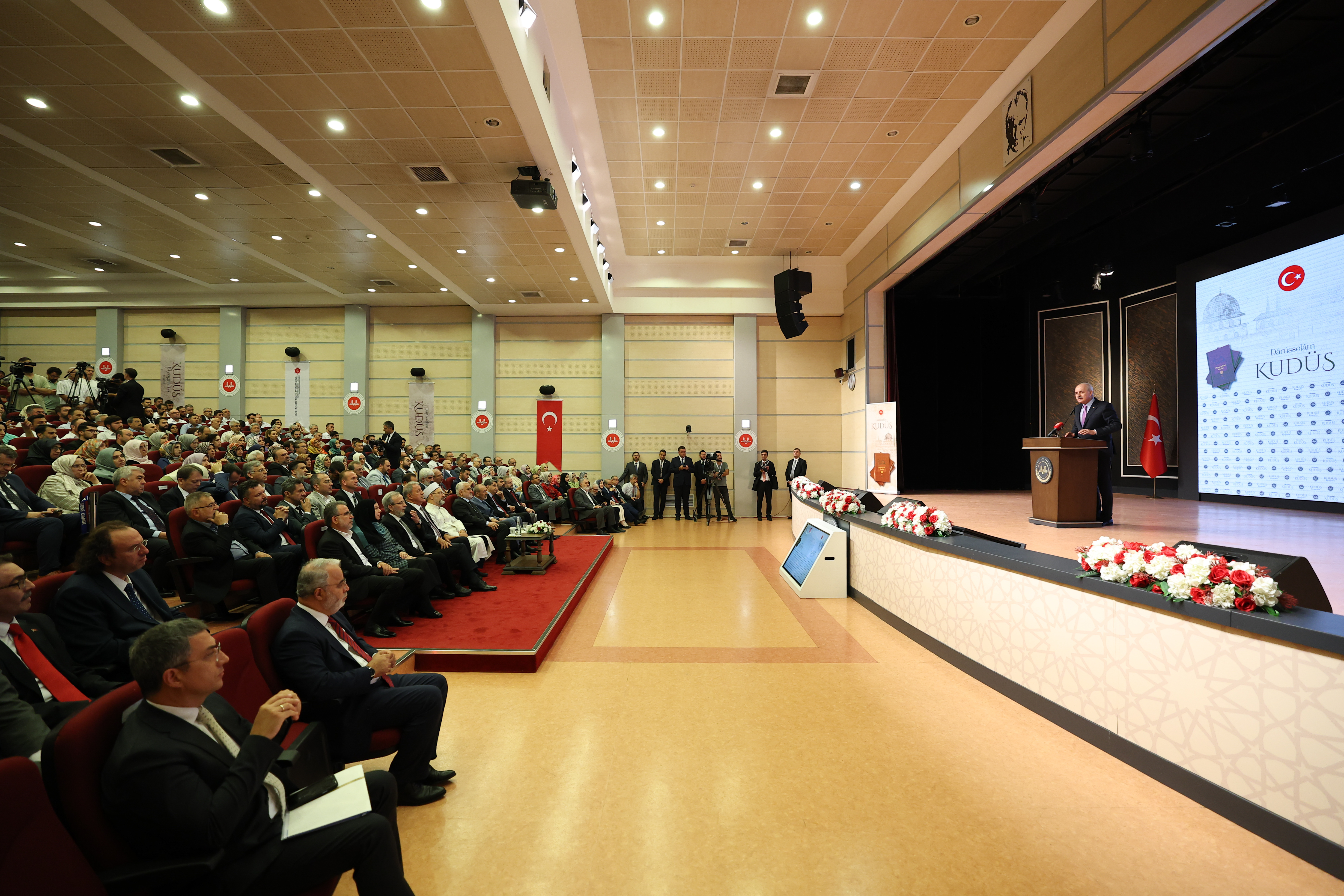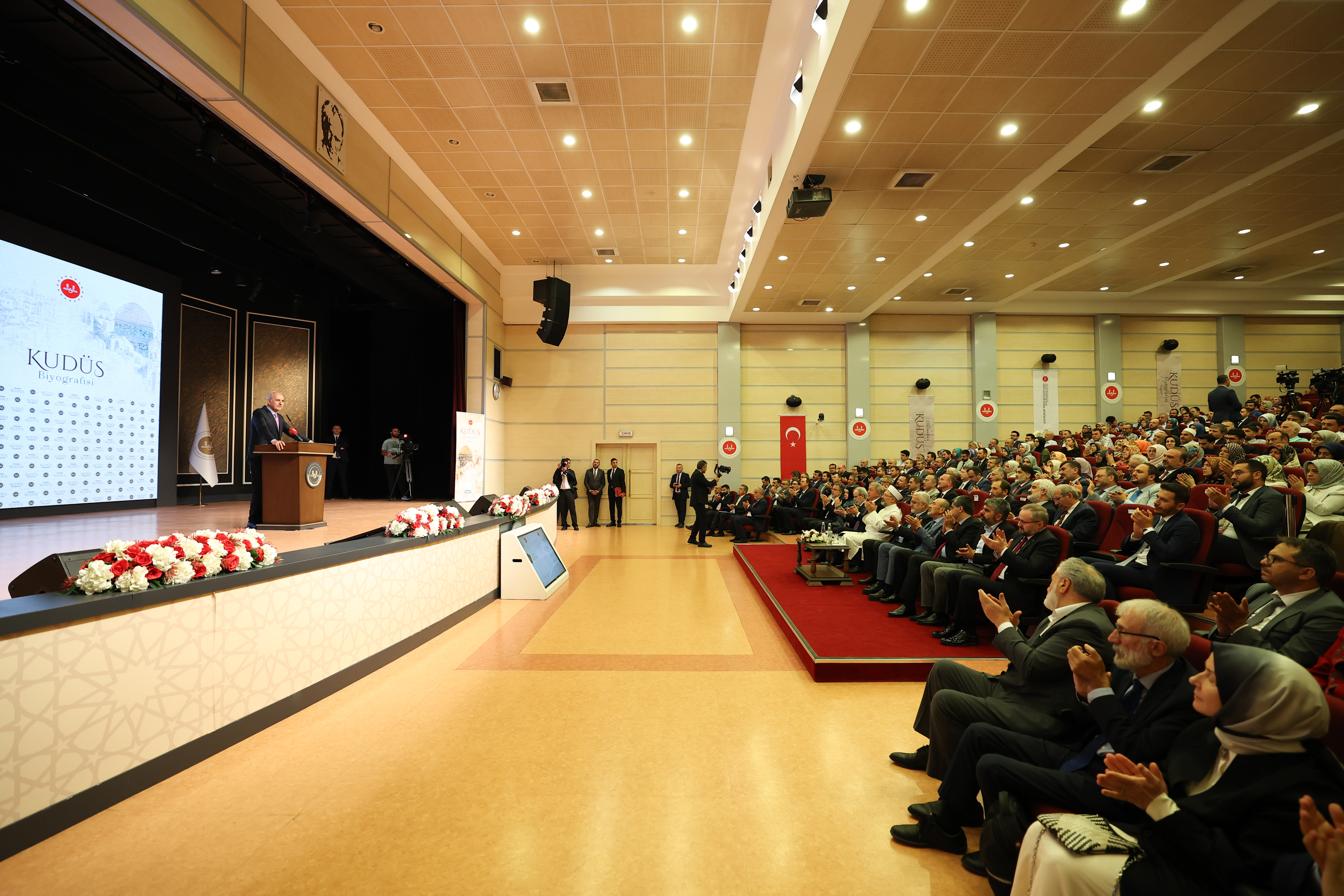 Kudüs’ü çok yönlü ve çok katmanlı bir mesele olarak tanımlayan Kurtulmuş, şehrin İslam medeniyetinin en büyük merkezlerinden biri olduğunu ifade ederek, “Her köşesinde, her sokağında, her yapısında, her türlü sanatın yer aldığı, mimarisiyle, gravürleriyle, hat sanatlarıyla yer aldığı muazzam bir şehir inşa edilmiştir. Kudüs ayrıca kendisiyle ilgili en fazla şiirlerin kaleme alındığı şehirlerden birisidir.” dedi.
