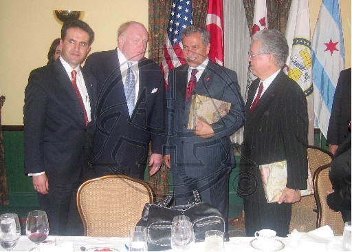 Chicago Union League kulübünde verilen yemekli toplantıya, aralarında İsviçre, Ukrayna, Mısır, Hindistan, Güney Afrika Cumhuriyeti ve Uruguay'ın Chicago başkonsolosları, Yunan Ortodoks Kilisesi Başpiskoposu, Amerikalı işadamları, düşünce kuruluşlarından temsilciler, Amerikan Yahudi Komitesi üyeleri ve Chicago'daki Türk toplumunun önde gelen isimlerinde oluşan 100'e yakın seçkin davetli katıldı.