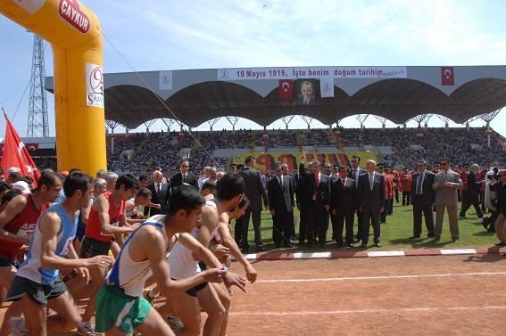 kutlamalara, 19 Mayıs Stadı'nda devam edildi. 19 Mayıs Yarı Maratonu'nun startı TBMM Başkanı Köksal Toptan