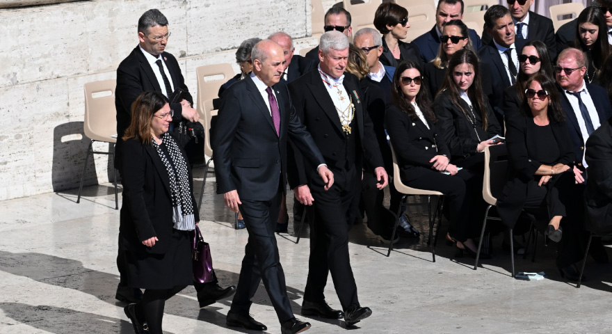 TBMM Başkanı Numan Kurtulmuş, Vatikan Devlet Başkanı Papa Franciscus'un Vatikan'ın Aziz Petrus Meydanı'nda düzenlenen cenaze törenine Türkiye'yi temsilen katıldı.