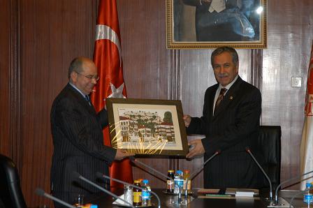 Karabük'ün kuruluşunun 70.Yıldönümü nedeniyle TBMM Başkanı Arınç'ı ziyaret eden Vali Can Direkçi başkanlığındaki heyette Belediye Başkanı Hüseyin Erer, ilçe kaymakamları, Kardemir AŞ' nin yöneticileri, sivil toplum kuruluşlarının temsilcileri ve Karabük milletvekilleri yer aldı.
