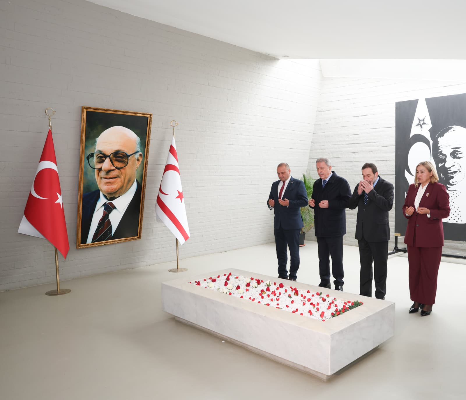 Akar ve beraberindeki heyet, Rauf Raif Denktaş'ın anıt mezarında Denktaş'ın oğlu Serdar Denktaş tarafından karşılandı.