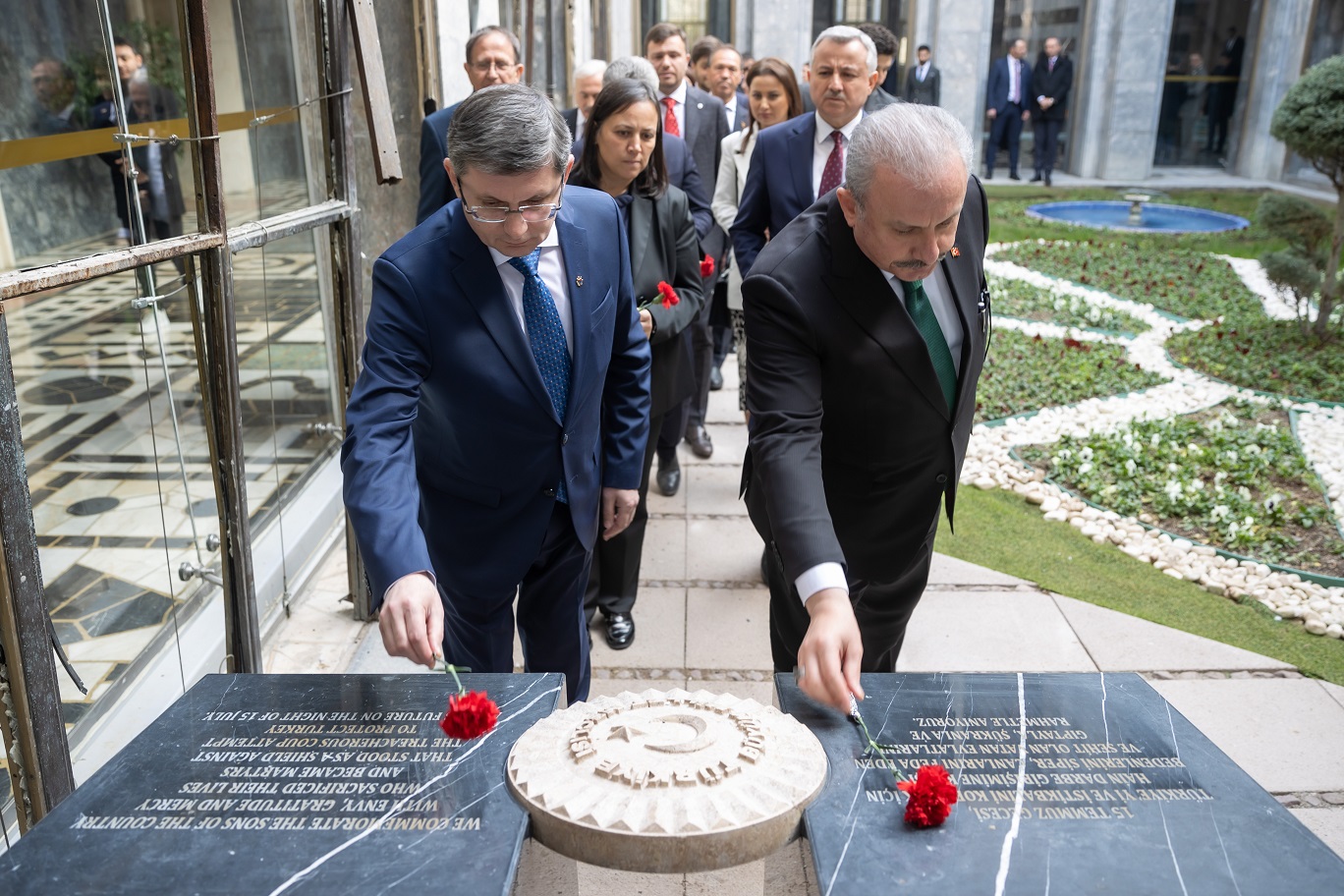 TBMM Başkanı Şentop ve konuk Meclis Başkanı, heyetler arası görüşmenin ardından 15 Temmuz’da bombalanan alana karanfil bıraktı. Şentop, mevkidaşına daha sonra, 15 Temmuz Milli Birlik Günü sergisini ve TBMM Genel Kurul salonunu gezdirdi.