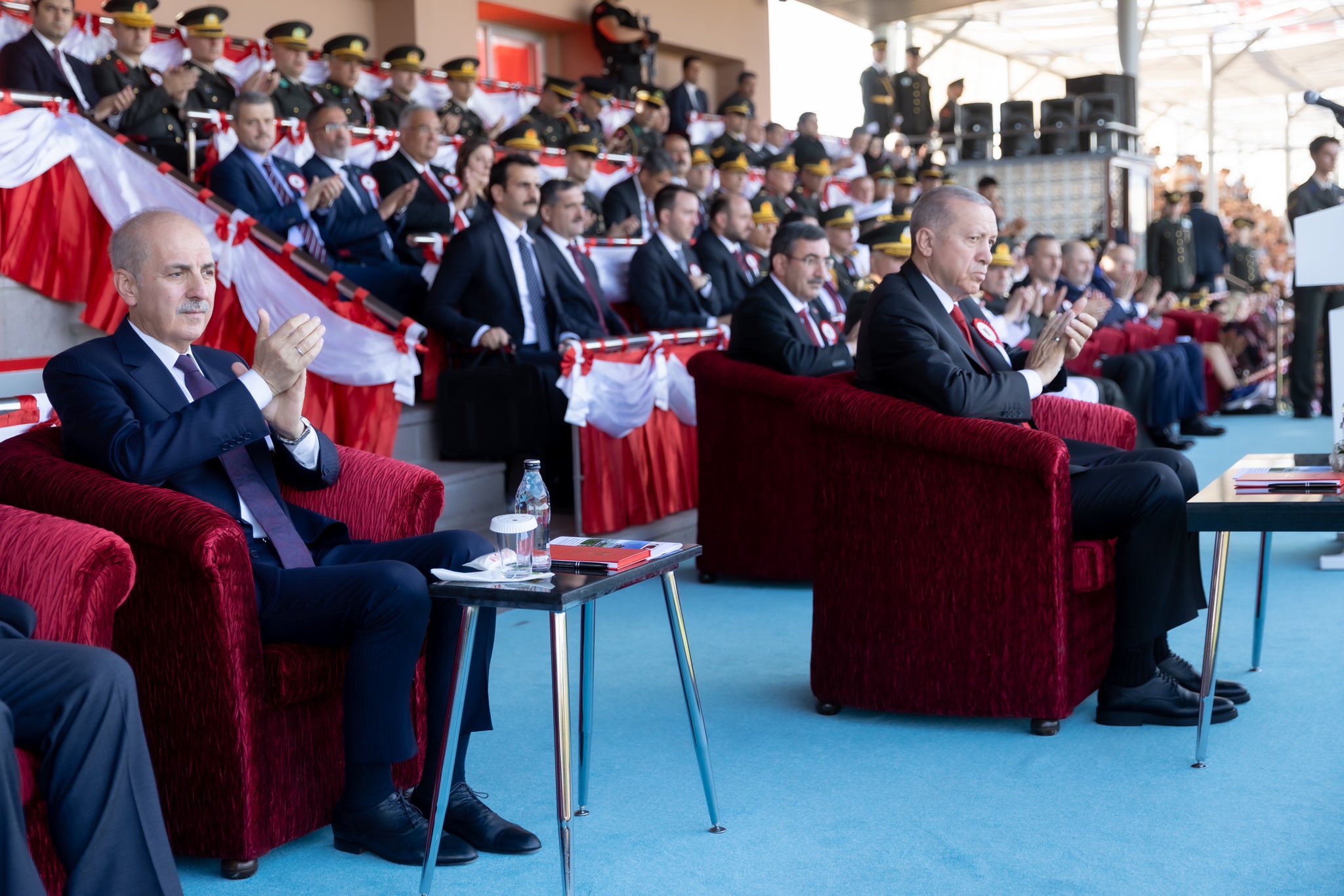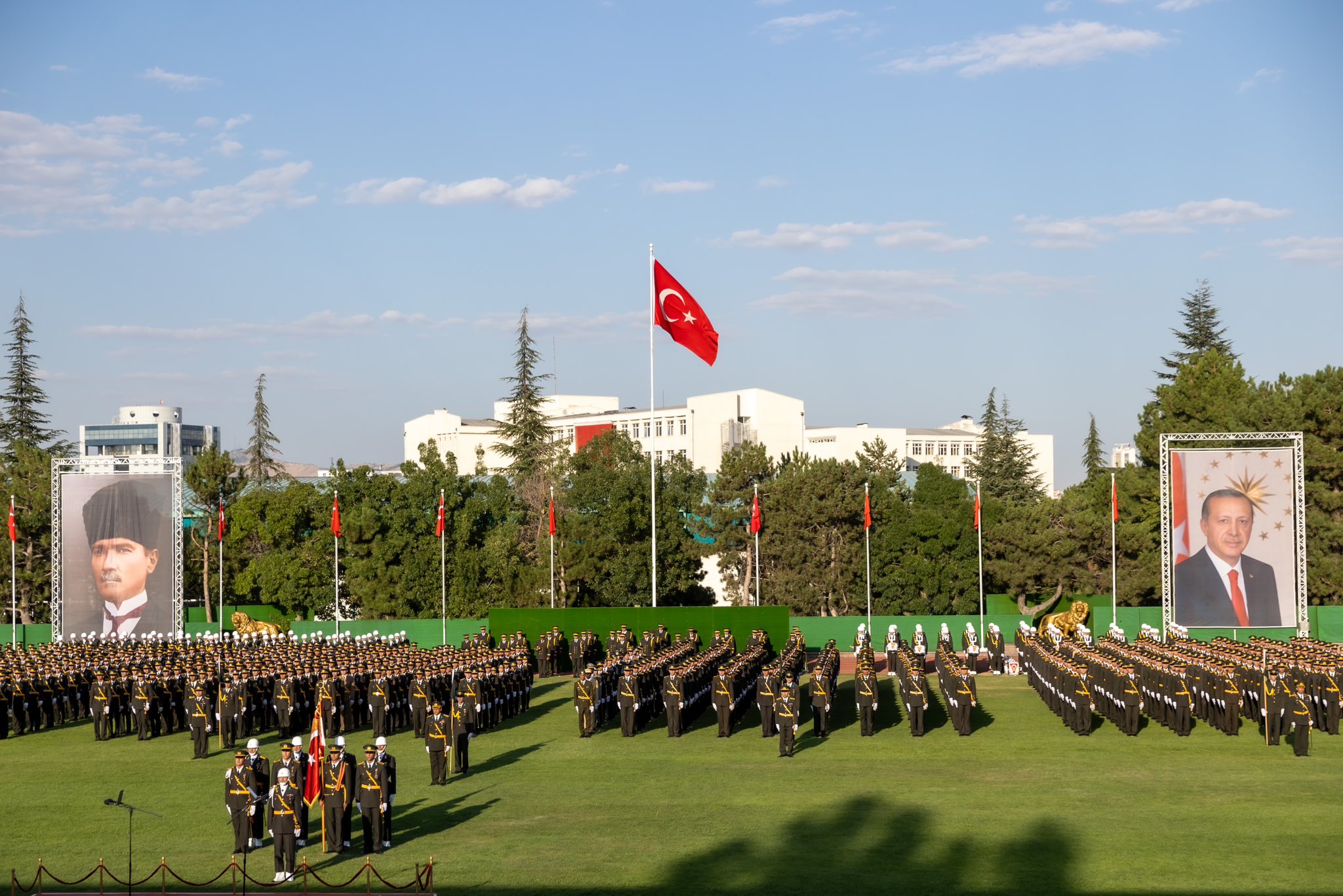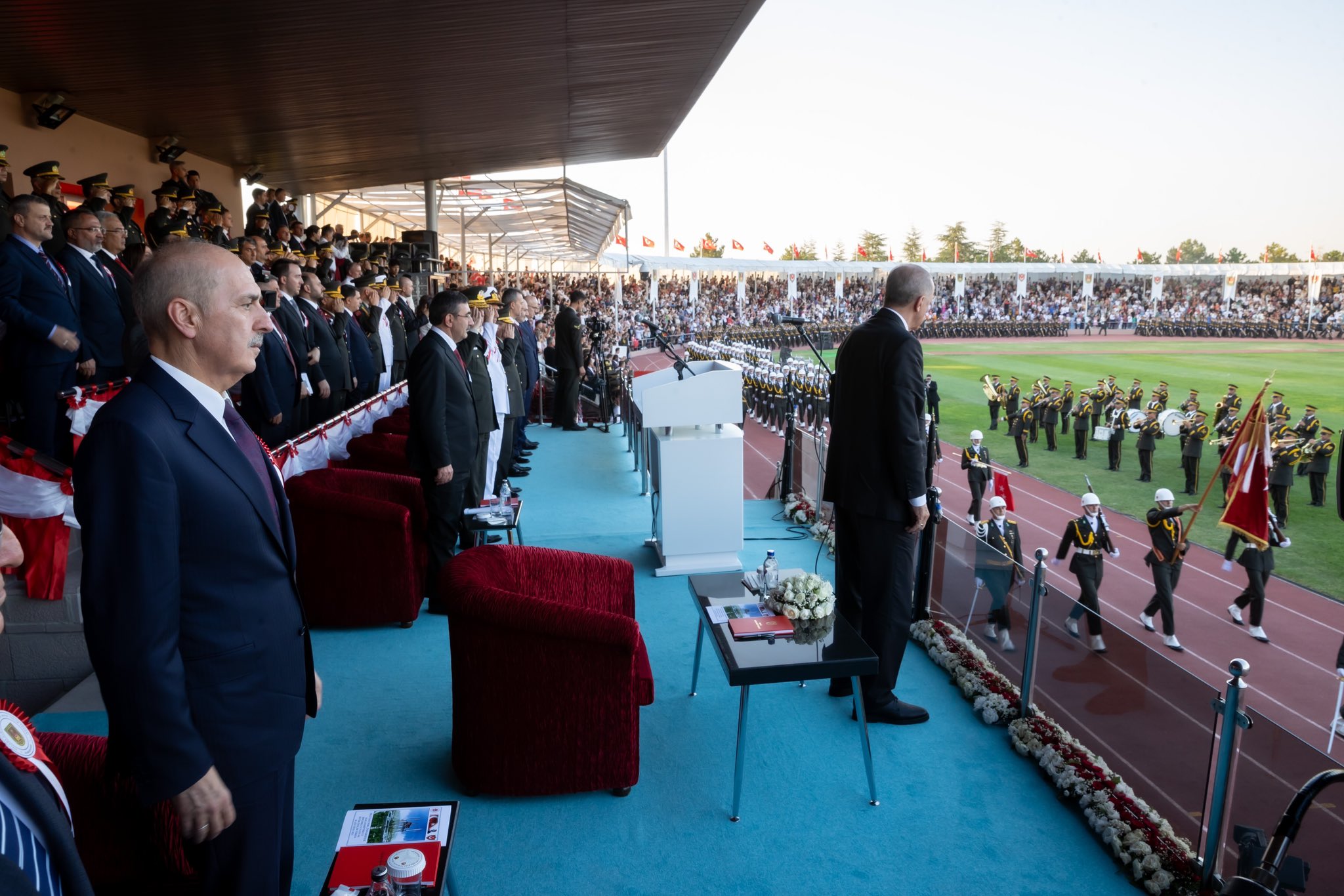 "Cumhurbaşkanımız Sayın Recep Tayyip Erdoğan’ın teşrifleriyle düzenlenen Millî Savunma Üniversitesi Kara Harp Okulu Diploma ve Sancak Devir Teslim Töreni'ne katıldık. Kara Harp Okulu’nu dönem ikincisi olarak bitiren Teğmen Mustafa Çalıca’ya diplomasını takdim ettik. Milletimizin göz bebeği şanlı ordumuza katılan teğmenlerimizi tebrik ediyor, başarılar diliyorum."