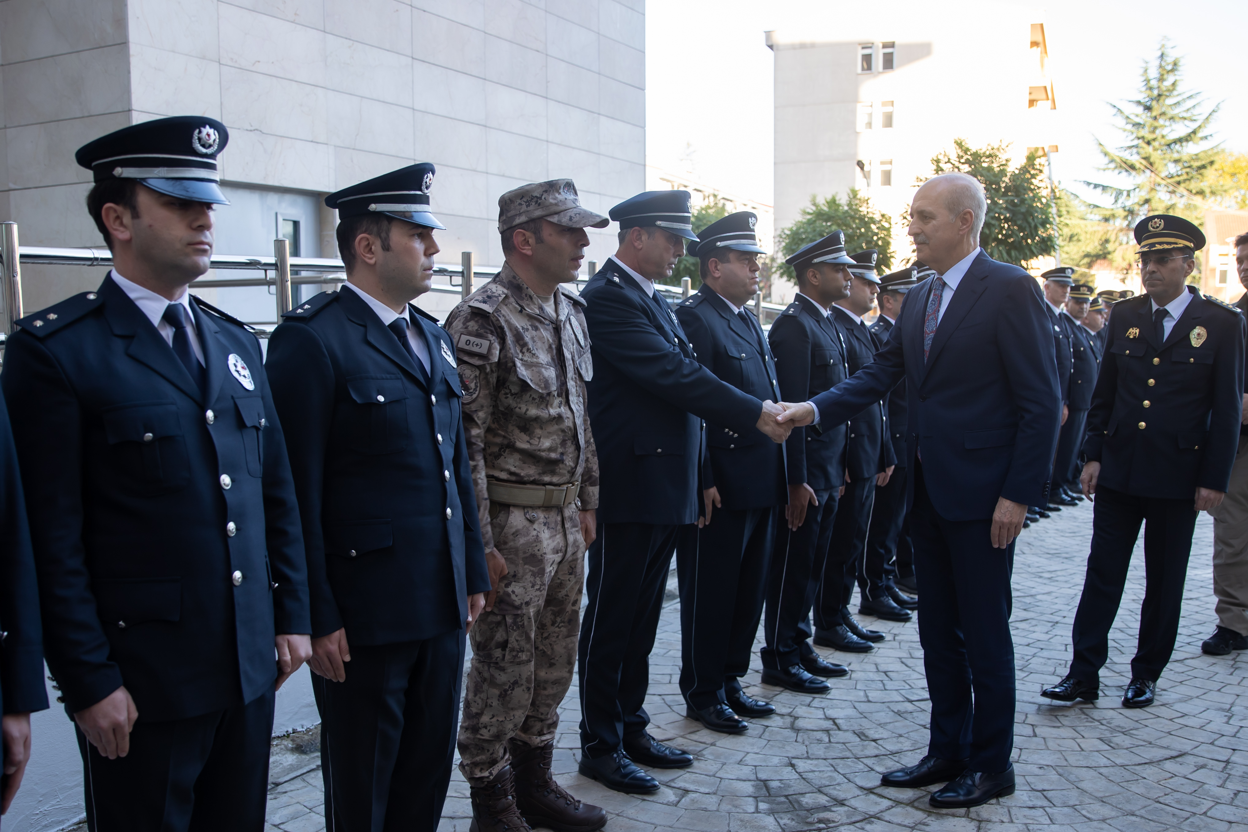 İl Emniyet Müdürü Atilla Aksoy ile personel tarafından karşılanan Kurtulmuş, polis tören mangasını selamladı, daha sonra müdürlüğe ait defteri imzaladı.