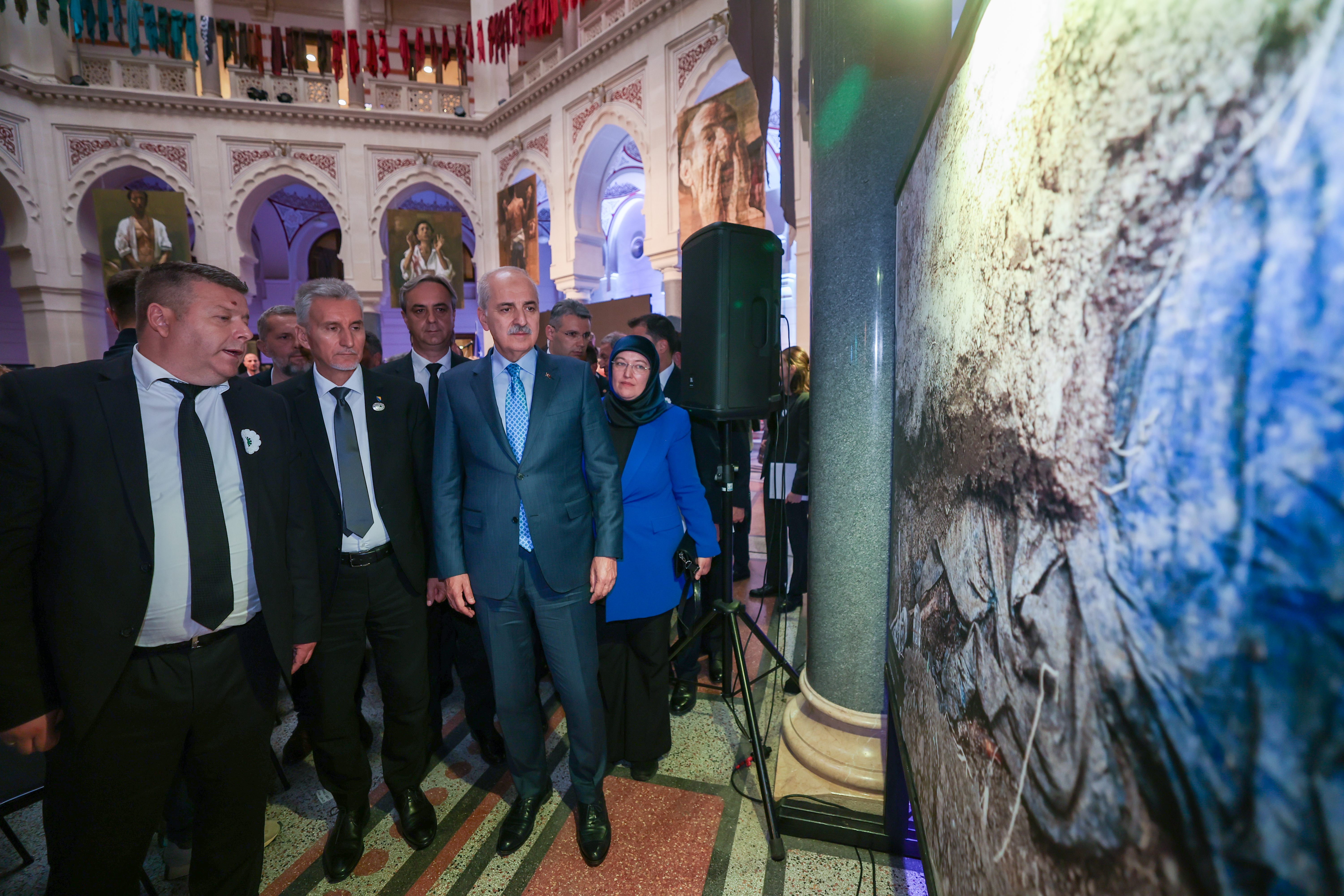 TBMM Başkanı Kurtulmuş, konuşmaların ardından Bosna Hersek Federasyonu Başbakanı Nermin Niksic, Bosna Hersek Temsilciler Meclisi Başkan Yardımcısı Kemal Ademovic ve diğer davetlilerle sergiyi gezdi.