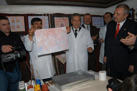 TBMM Başkanı Bülent Arınç, çeşitli inceleme ve ziyaretlerde bulunmak üzere geldiği Çankırı'da, Mola Evi'nin açılışını yaptıktan sonra, tarihi Çivitçioğlu Medresesi'nde faaliyet gösteren Çankırı Belediyesi'nin ebru kurslarını gezdi ve ilgililerden bilgi aldı. Arınç, daha sonra beyaz önlük giyerek gül dalı ve at kılından oluşan ebru fırçasıyla kursiyerlerle birlikte ebru çalışması yaptı; ayrıca Çankırı'ya 20 kilometre uzaklıktaki Tuz Mağarası'nı gezdi.