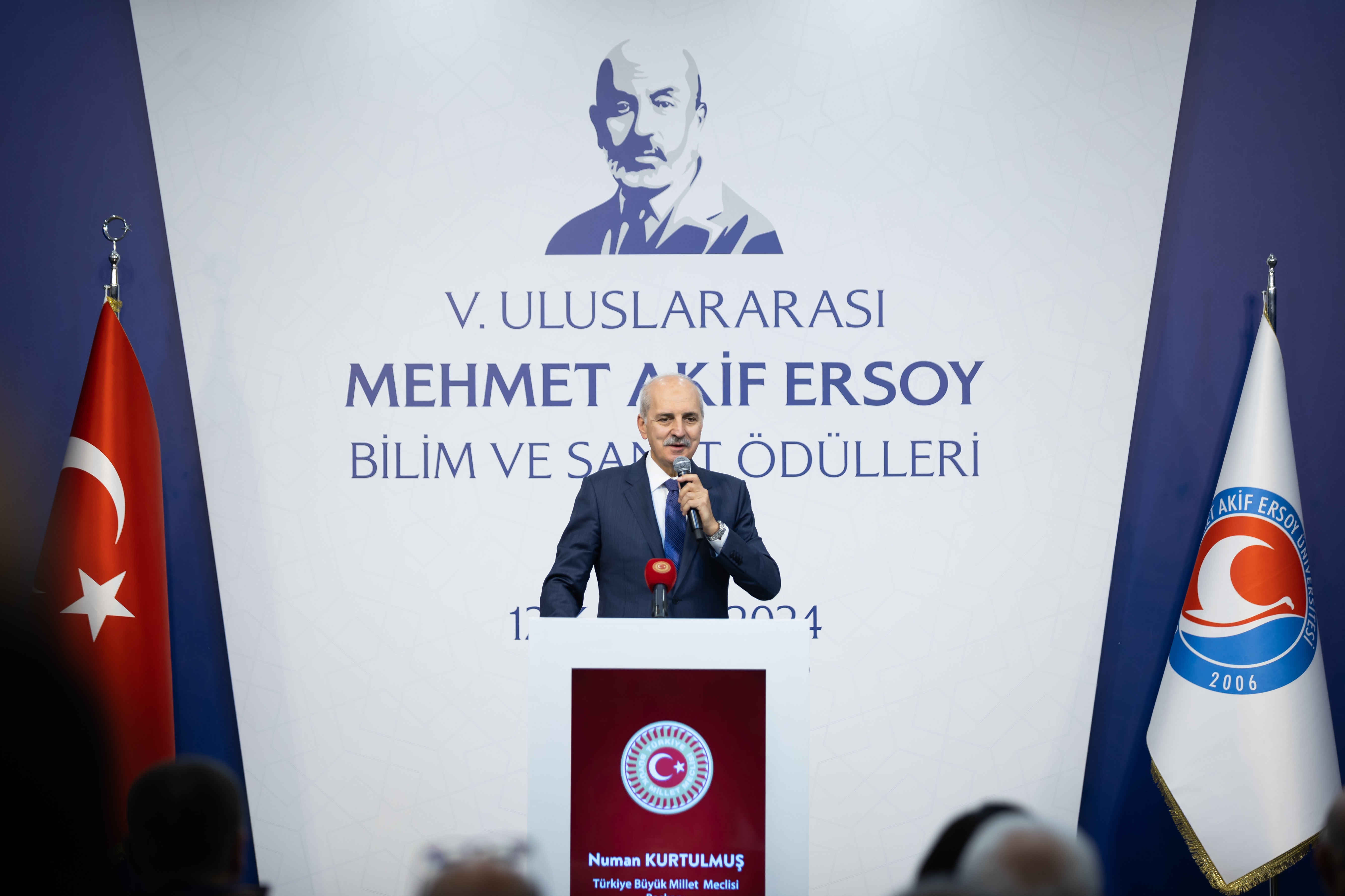 Meclis Başkanı Kurtulmuş, 5. Uluslararası Mehmet Akif Ersoy Bilim ve Sanat Ödülleri Töreni ile Burdur Mehmet Akif Ersoy Üniversitesi 2024-2025 Akademik Yılı Açılış Töreni'nde yaptığı konuşmada, Burdur'da olmaktan duyduğu memnuniyeti dile getirerek, üniversite tarafından düzenlenen programı, önemli ve anlamlı bulduğunu belirtti.