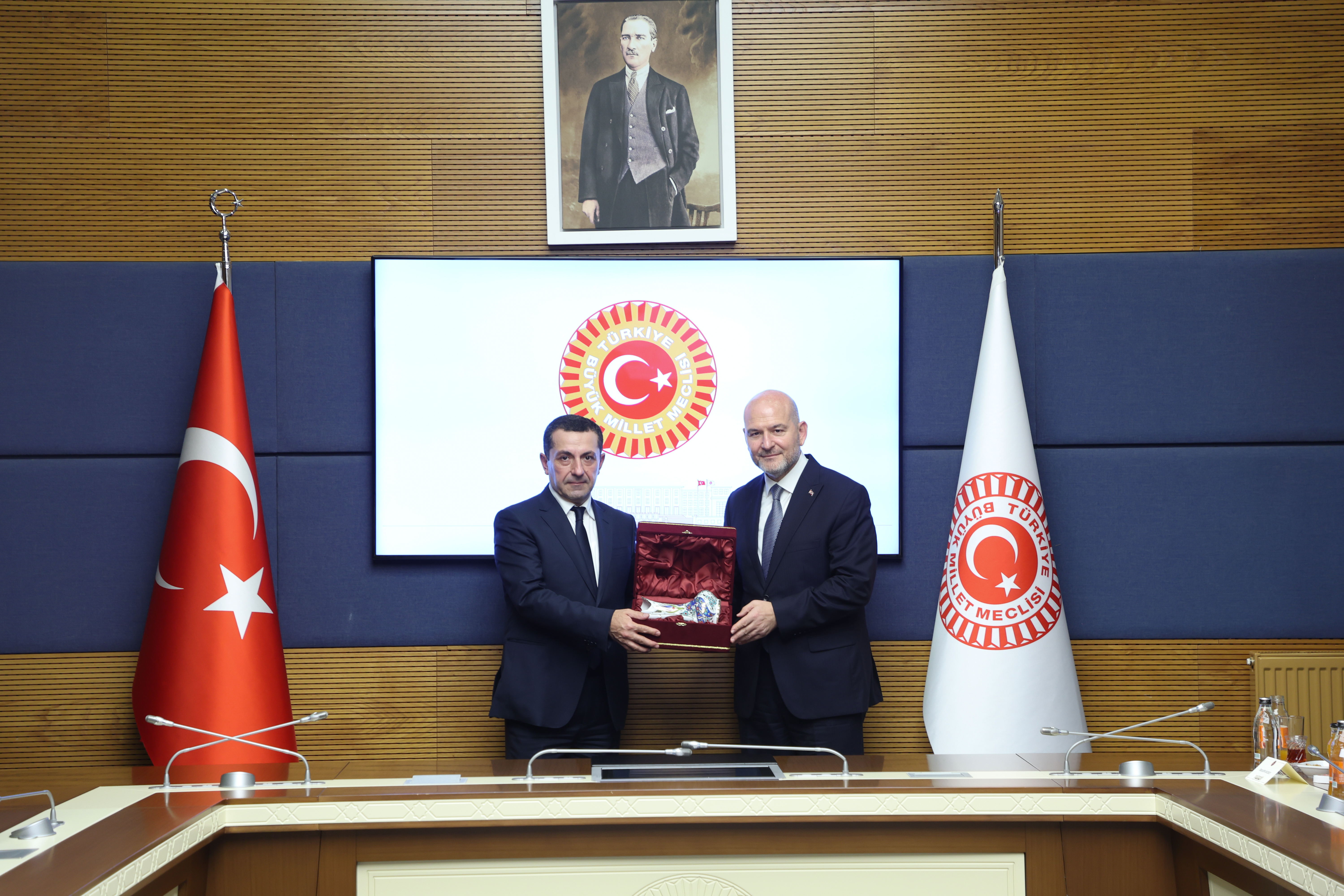 TBMM İçişleri Komisyonu Başkanı Soylu, Meclis'te gerçekleşen görüşmede, Gürcistan heyetini Ankara'da ve Gazi Meclis'te ağırlamaktan duyduğu onuru ifade etti.