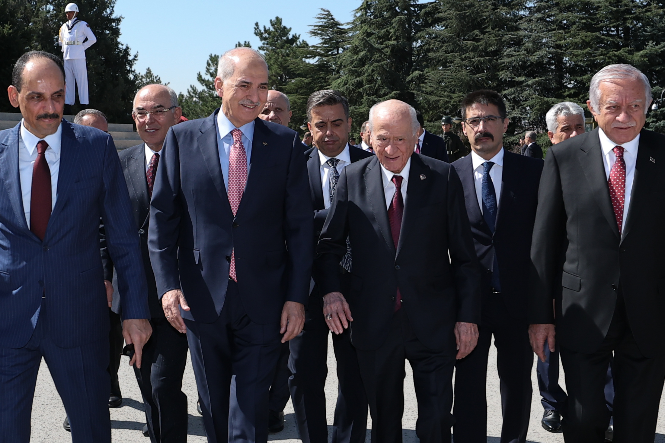 Cumhurbaşkanı Erdoğan başkanlığındaki kortejde, TBMM Başkanı Numan Kurtulmuş, Cumhurbaşkanı Yardımcısı Cevdet Yılmaz, CHP Genel Başkanı Özgür Özel, Cumhurbaşkanlığı Kabinesi üyeleri, MHP Genel Başkanı Devlet Bahçeli, İYİ Parti Genel Başkanı Müsavat Dervişoğlu, yüksek yargı organlarının başkanları, komutanlar, siyasi partilerin temsilcileri, bürokratlar ve diğer devlet erkanı yer aldı.