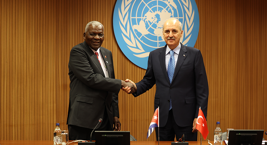 "Türkiye ve Küba çok uzak noktalarda olmakla birlikte insani meselelerdeki ortak yaklaşımları dolayısıyla kalben ve zihnen birbirine yakın iki ülkedir. Özellikle Filistin meselesinde Küba'nın hem halk olarak hem devlet olarak gösterdiği desteği takdirle karşıladığımızı değerli mevkidaşıma da ifade ettim. Ümit ederim ki en kısa zamanda bütün dünyada insanlık cephesi kazanacak ve Filistin halkına karşı işlenen insanlık suçlarının nedeni olan Netanyahu ve ekibi uluslararası mahkemelerde yargılanacaktır. Görüşmemizde, Türkiye ve Küba arasındaki ikili ilişkileri de ele alarak kıymetli kardeşim Esteban Lazo Hernandez'e, kendisini ve heyetini en kısa sürede Türkiye'de ağırlamak istediğimi de belirttim."