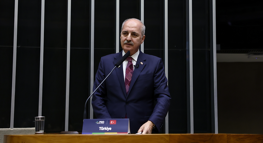 Brezilya Temsilciler Meclisi Genel Kurul Salonunda yapılan zirvenin, “Parlamentoların Açlık, Yoksulluk ve Eşitsizlikle Mücadeleye Katkısı” başlıklı oturumunda konuşan Kurtulmuş, geleceğe dair alınacak köklü kararları tartışmak, daha adil bir düzenin temellerini atmak için bugün bir araya gelindiğini söyledi.