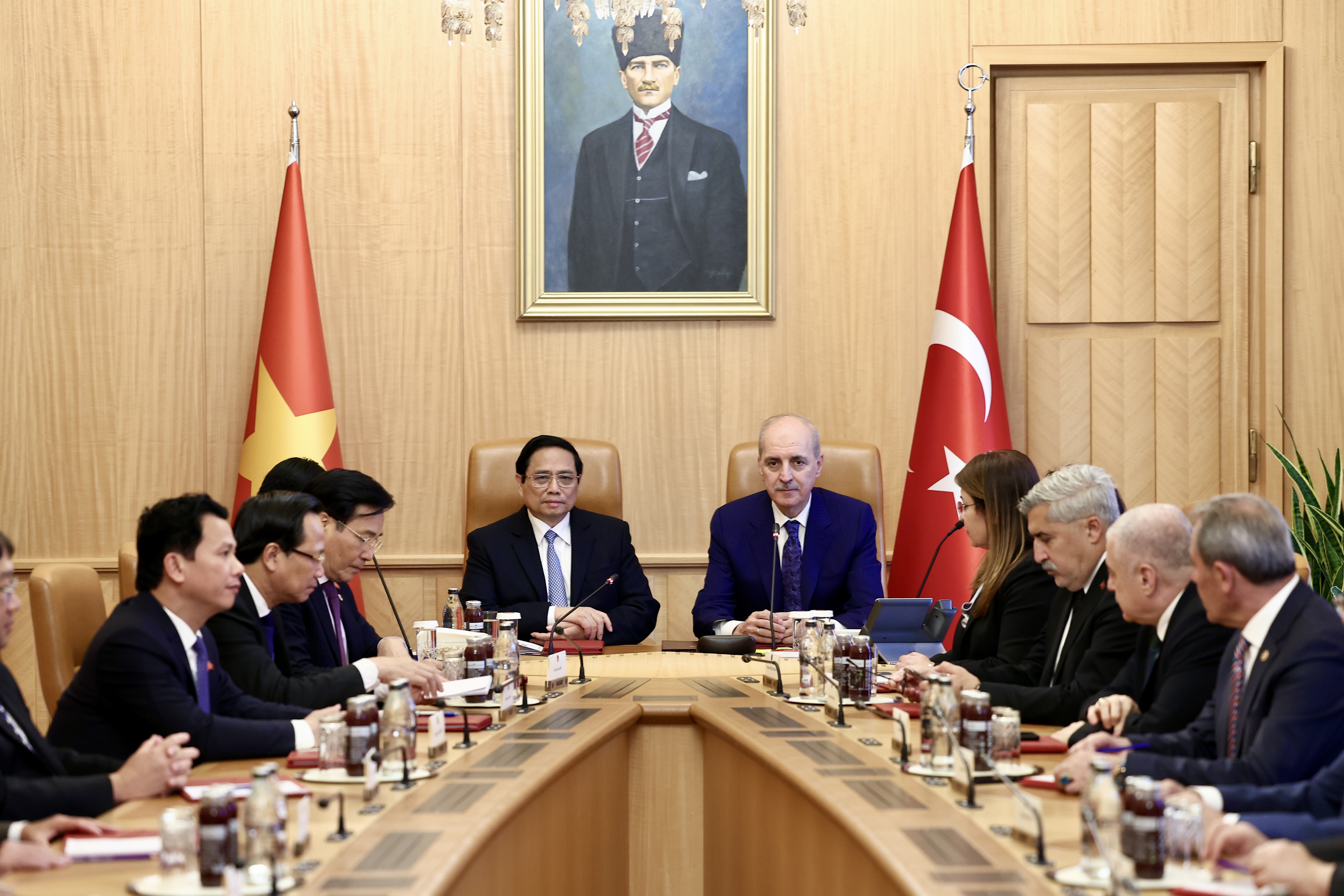 Vietnam Başbakanı Chinh ise, TBMM’de ağırlanmaktan duyduğu memnuniyeti dile getirerek, TBMM Başkanı Kurtulmuş’un, Türkiye-Vietnam arasındaki ikili ilişkilerin artırılması, Asya-Pasifik’in dünya konjonktüründe yükselen bir konuma sahip olduğu gerçeği, Orta Doğu’da yaşanan karışıklıklar ve İsrail ile Hamas arasındaki anlaşmazlık gibi hususlardaki tespitlerine sonuna kadar katıldıklarını söyledi.