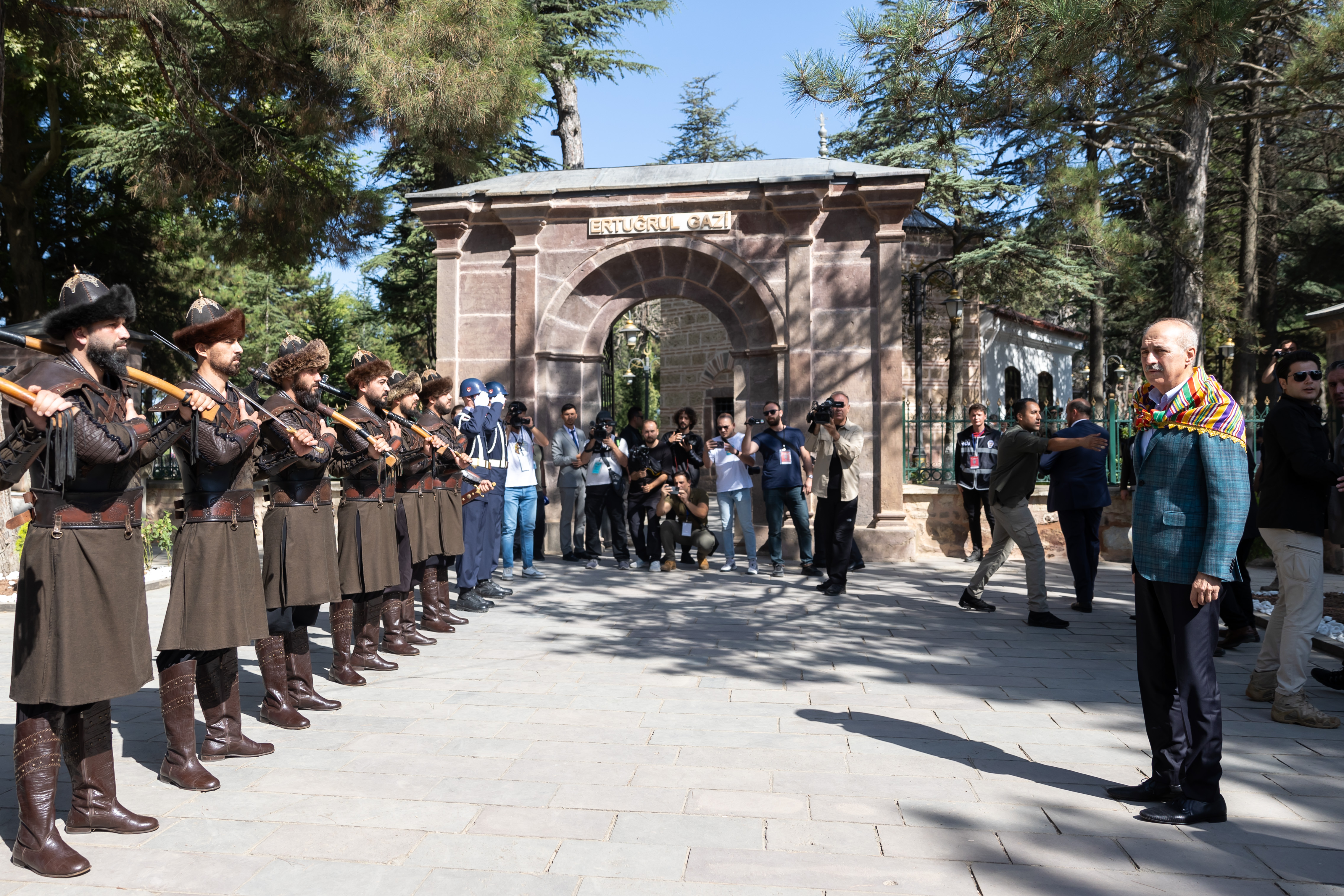 TBMM Başkanı Kurtulmuş, Ertuğrul Gazi Türbesi Saygı Nöbeti timindeki Alpleri selamlayarak, saygı nöbeti devir teslim törenini izledi.