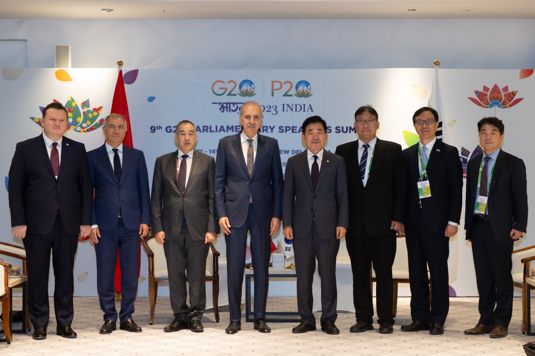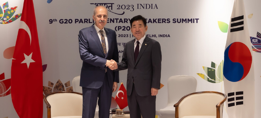 P20 Parlamento Başkanları Zirvesi dolayısıyla Hindistan’ın başkenti Yeni Delhi’de bulunan Meclis Başkanı Numan Kurtulmuş, ikili temasları kapsamında Güney Kore Ulusal Meclis Başkanı Kim Jin-pyo ile bir araya geldi.