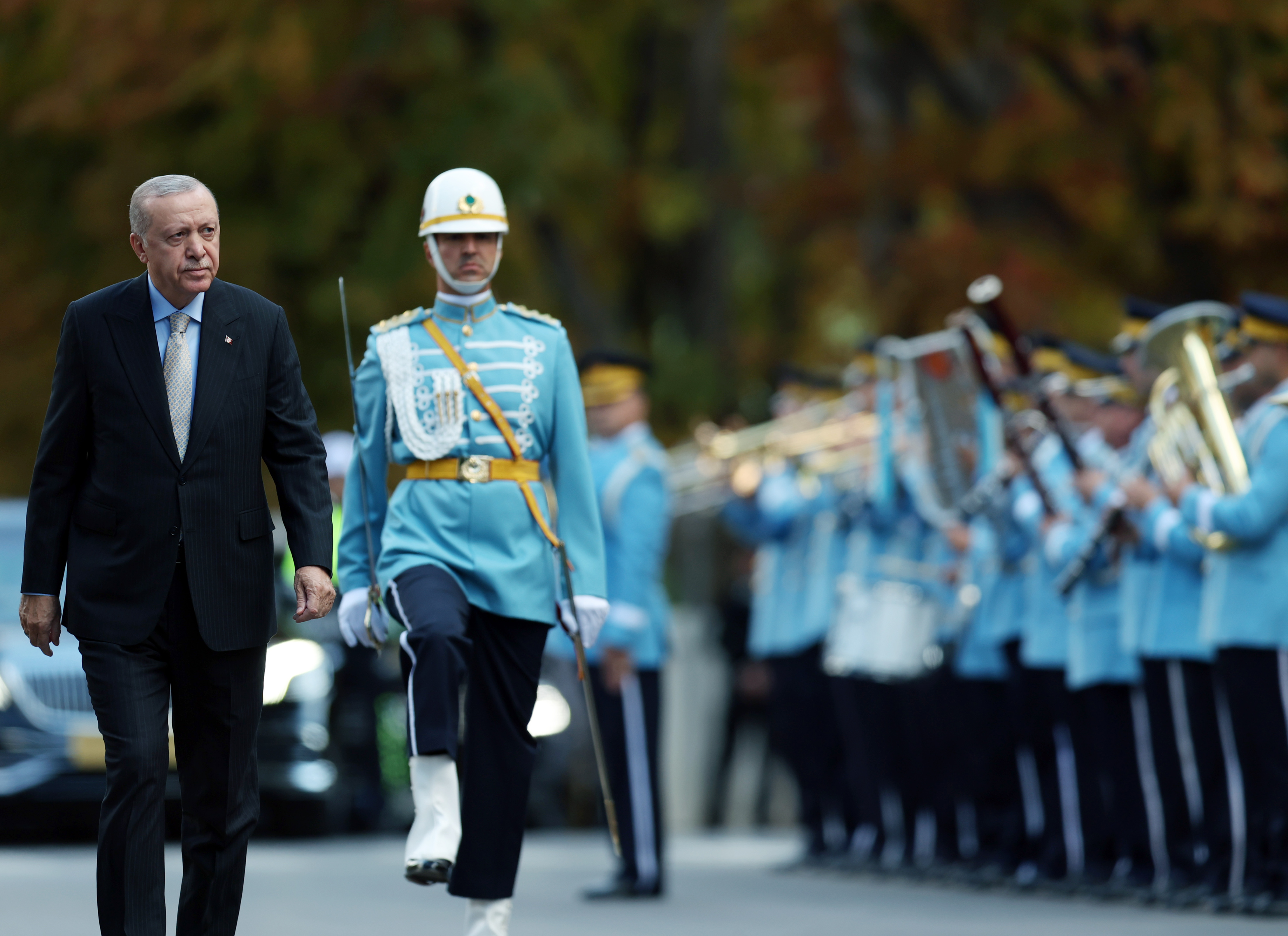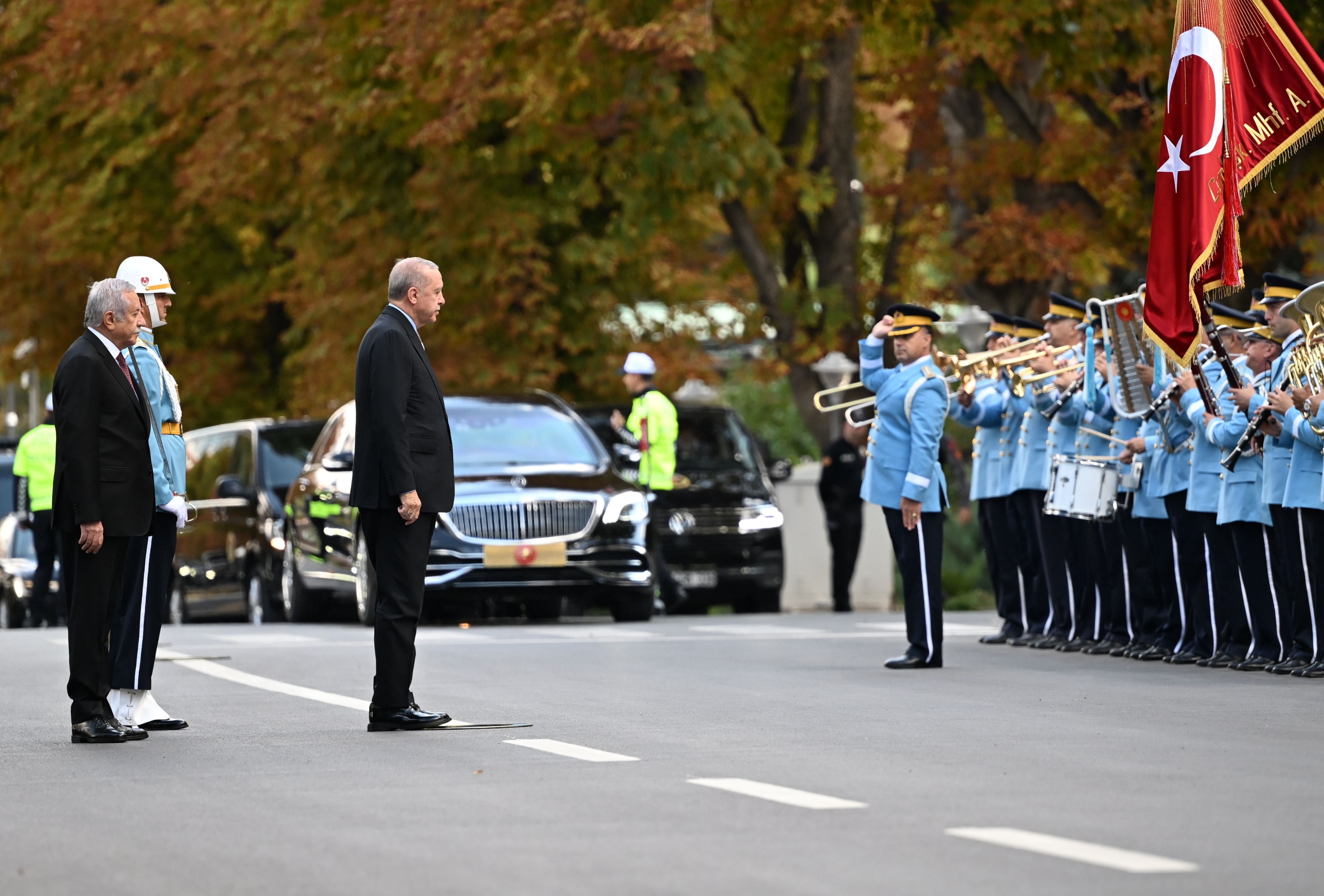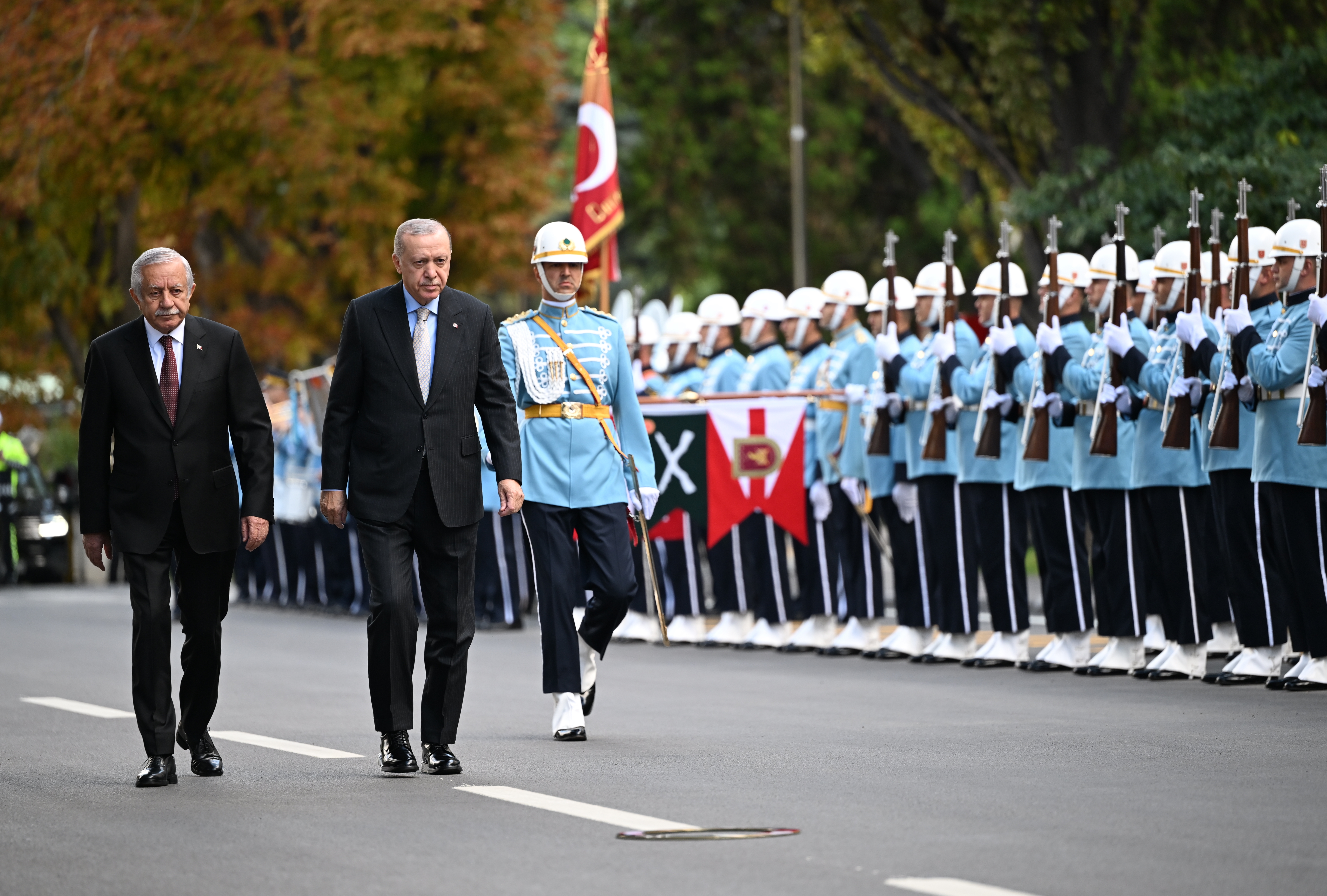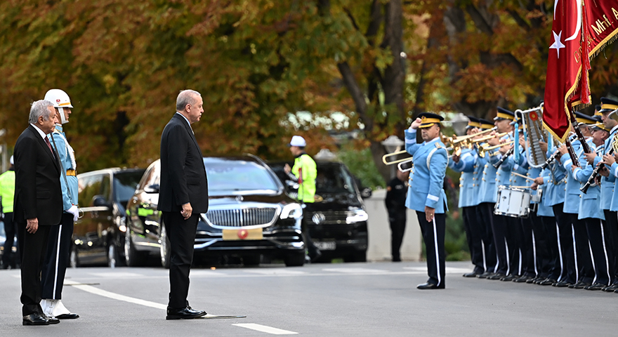 TBMM Başkanı Numan Kurtulmuş, Cumhurbaşkanlığı Onur Kıtası'nı selamlayan Cumhurbaşkanı Erdoğan'ı Şeref Kapısı önünde karşıladı.