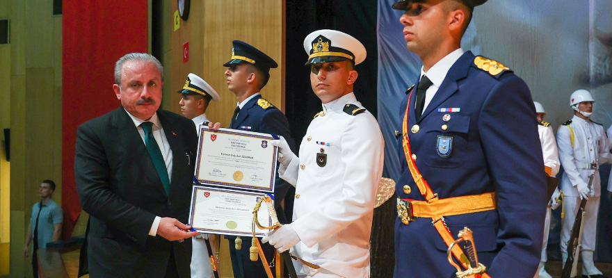 TBMM Başkanı Prof. Dr. Mustafa Şentop, Milli Savunma Üniversitesi Deniz ve Hava Harp Okulu Diploma Alma ve Sancak Devir Teslim Töreni?ne iştirak etti. Şentop, Deniz Harp Okulu ikincisi Mehmet Doğukan Özdamar?a diplomasını takdim etti.