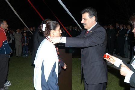 Ünlü atlet Zeki Öztürk'ün eşi olan ve Yenimahalle Belediyesi'nde 18 yıldır zabıta memuru olarak çalışan Lale Öztürk, ödülünü almaya 6 yaşındaki kızı Lara Öztürk ile geldi. Şahin, Öztürk'ün madalyasını kızının boynuna taktı.