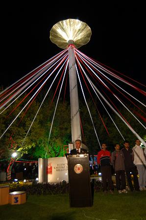 ''Meclisimizin en yüksek noktasına diktiğimiz bu meşale, 86 yıl önce bağımsızlık mücadelesini vermek, Cumhuriyetimizi kurmak, güçlü ve bağımsız bir devlet olmak adına yola çıkanların anısına yapılmıştır'' diyen Arınç, Milli Egemenlik Haftası kapsamında 15 değişik etkinlikten oluşan bir program hazırladıklarını, kutlamalara ilk olarak 17. Milli Egemenlik Sempozyumu'nu Kırşehir'de gerçekleştirerek başladıklarını söyledi.