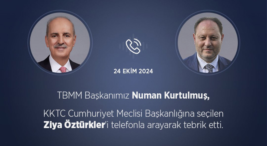 TBMM Başkanı Numan Kurtulmuş KKTC Meclis Başkanlığına seçilen Ziya Öztürkler’i telefonla arayarak tebrik etti.