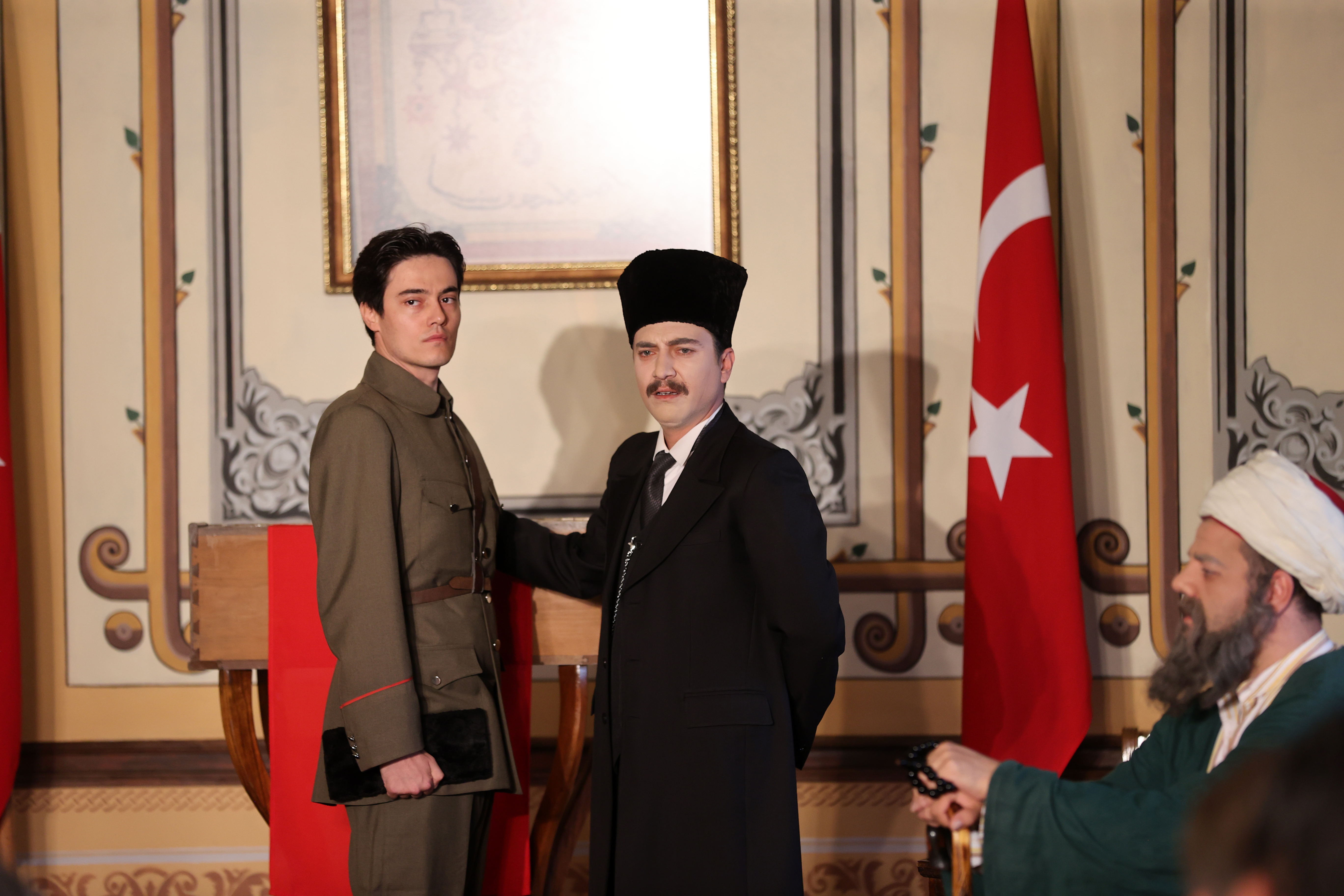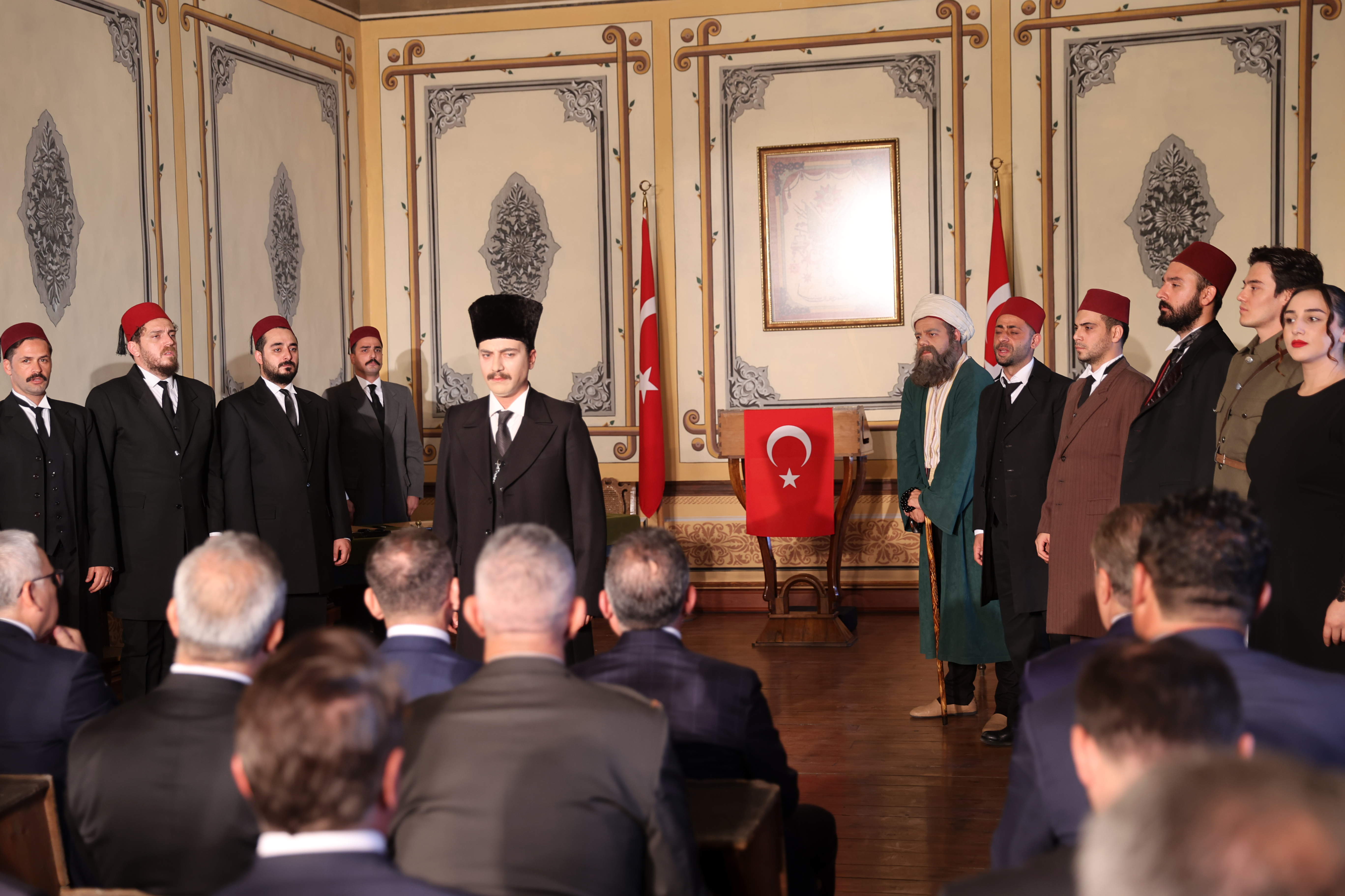 Bozdağ, salondaki tarihi sıralara oturarak sanatçılar tarafından hazırlanan Sivas Kongresi'nin temsili canlandırılmasını takip etti.