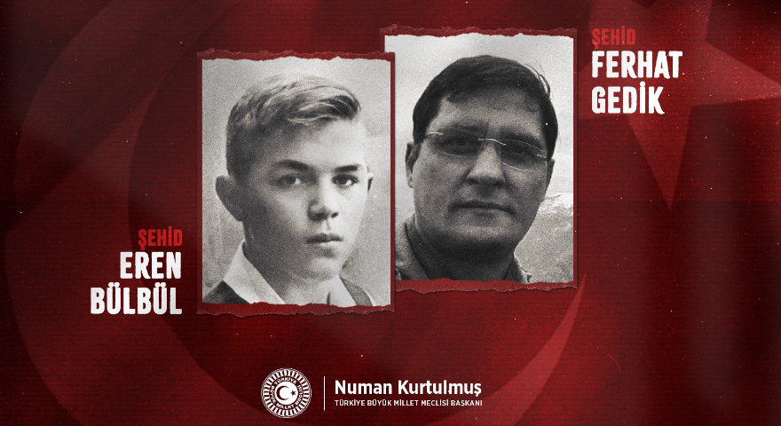 TBMM Başkanı Numan Kurtulmuş, Trabzon'un Maçka ilçesi kırsalında, 11 Ağustos 2017'de terör örgütü PKK mensuplarıyla sağlanan sıcak temas sırasında şehit olan 15 yaşındaki Eren Bülbül ve Jandarma Astsubay Kıdemli Başçavuş Ferhat Gedik'i şehadetlerinin 8'inci yılında andı.