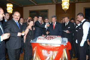 TBMM Tören Salonu'nda, 23 Nisan Ulusal Egemenlik ve Çocuk Bayramı nedeniyle verilen resepsiyonda konuklarını karşılayan Arınç, daha sonra üzerinde ''86. Yıl Kutlu Olsun'' yazılı pastayı kesti. Arınç, pastayı keserken ''düz oldu mu?'' diye sordu. Çevresindekilerin düzgün