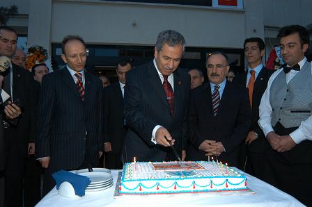 Arınç, daha sonra ''hayırlı olsun'' dileğiyle yıldönümü pastasını kesti.