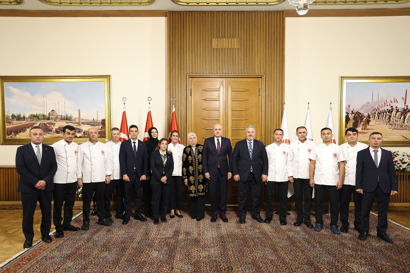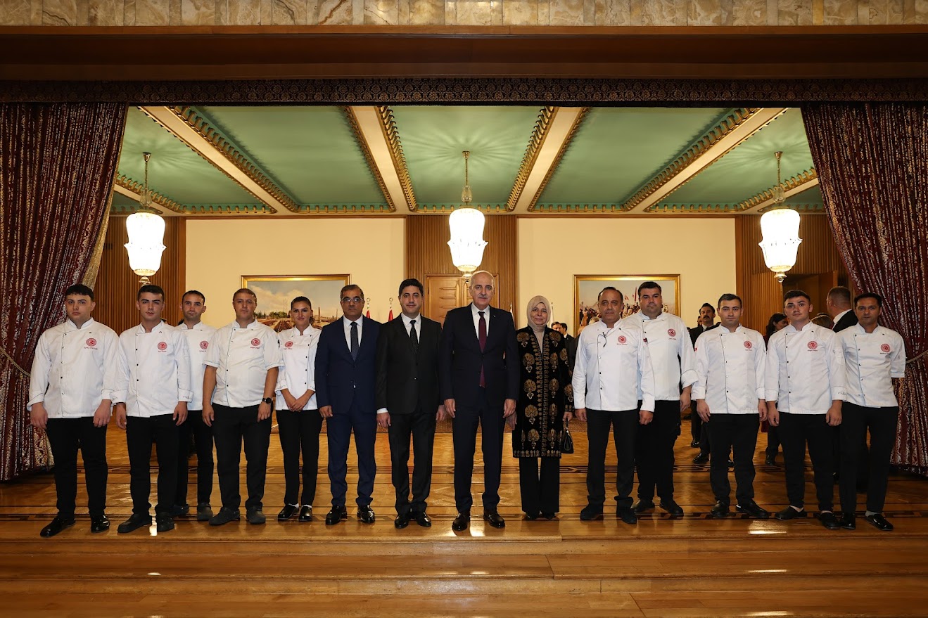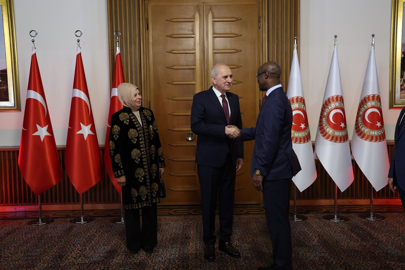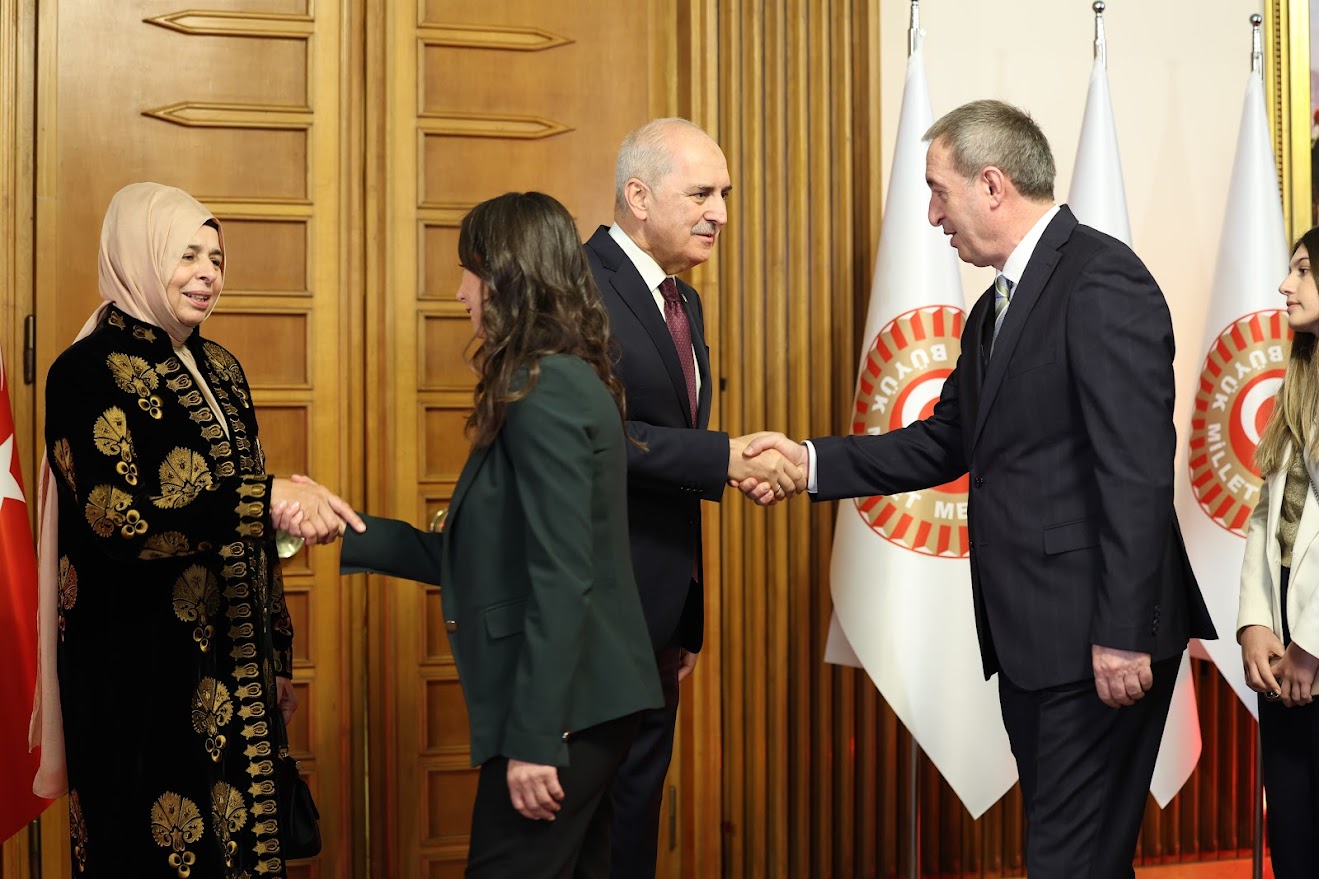 Cumhurbaşkanı Erdoğan, daha sonra TBMM Başkanı Kurtulmuş ile Tören Salonu'nun yanında bulunan Mermerli Salon'a geçti.