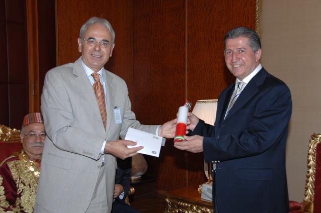 Geleneksel Kırkpınar güreşlerine TBMM Başkanı Toptan'ı davet eden Edirne Belediye Başkan Vekili Namık Kemal Döleken, Toptan'a geleneksel kırmızı dipli mum hediye etti.