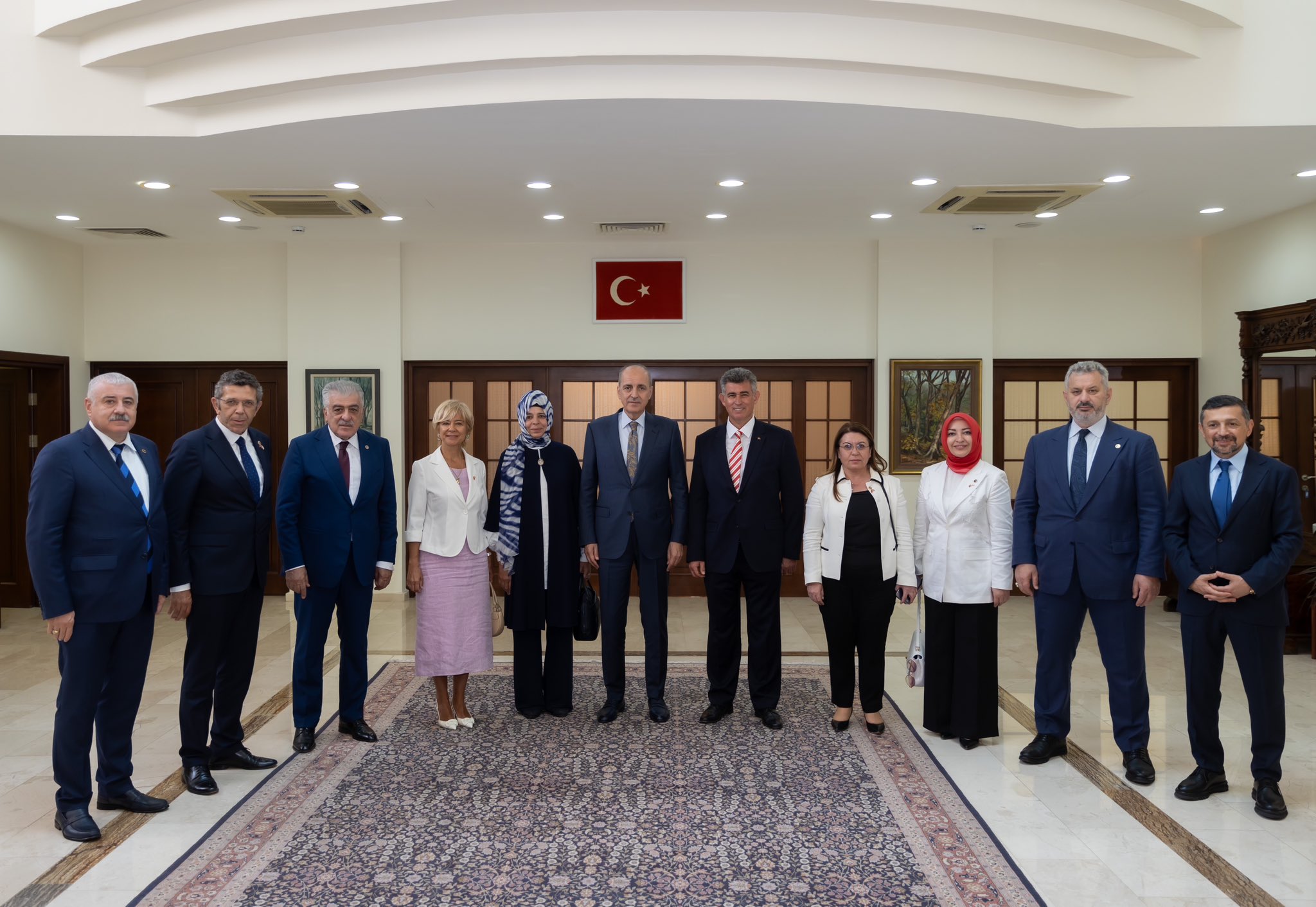Meclis Başkanı Kurtulmuş, Feyzioğlu’ndan yürütülen çalışmalar hakkında bilgi aldı.