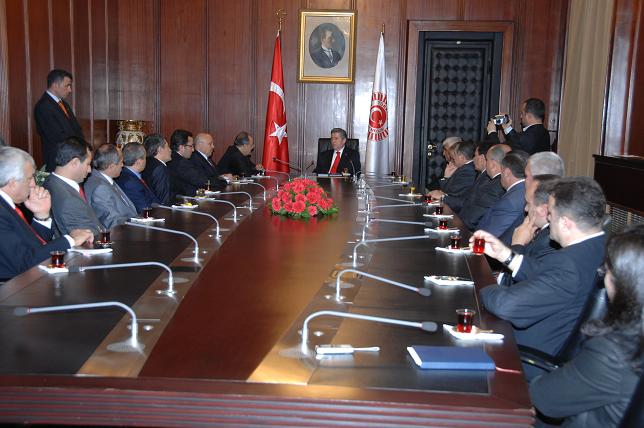 Cumhurbaşkanı Vekili ve TBMM Başkanı Köksal Toptan, Hak-İş Genel Başkanı Salim Uslu ve beraberindeki heyeti Divan Salonu'nda kabul etti.