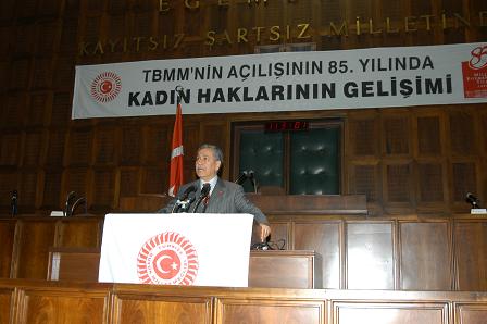 Arınç, 5 Aralık 1934'de Türk kadınına seçme ve seçilme hakkı tanındığını anımsatarak, bundan sonra 8 Şubat 1935'de yapılan seçime kadınların yüzde 50 oranında katıldığını bildirdi. Arınç, ilk kez bu seçim sonunda 17 kadın parlamenterin TBMM'ye girdiğini, 1936'da boşalma nedeniyle yapılan ara seçimde de bir kadının milletvekili seçildiğini anlattı. Bu seçimler sonunda kadınların Meclis'teki temsil oranının yüzde 4.6 olduğuna dikkati çeken Arınç, 3 Kasım 2002'de oluşan Parlamento'da da kadınların yüzde 4.4 oranında temsil edilebildiğini ifade etti. 70 yıl sonra aynı oranın ''başarı'' ile korunduğunun görüldüğünü bildiren Arınç, konuşmasını şöyle sürdürdü: