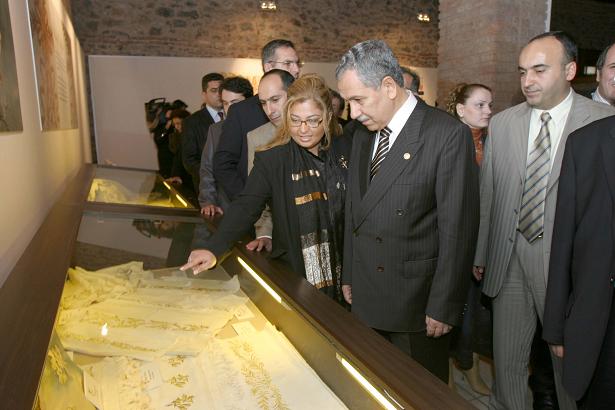 Meclis Haber: Dolmabahçe Sarayı'nın açılışının 150. Yıl dönümü dolayısıyla düzenlenen "Dolmabahçe Sarayı 150. Yıl Kutlama Etkinlikleri", Sarayda kullanılan tekstil ürünlerinin sergilendiği "Sandıklarda Saklı Saray Yaşamı" isimli sergi açıldı. Dolmabahçe Sarayında kullanılmış 100 parçadan fazla tarihi tekstil eserini bir araya getiren serginin açılışı TBMM Başkanı Bülent Arınç tarafından yapıldı. Sergiye sanat ve iş camiasının yanı sıra Amerikan Başkonsolosu Deborah Kjones de katıldı