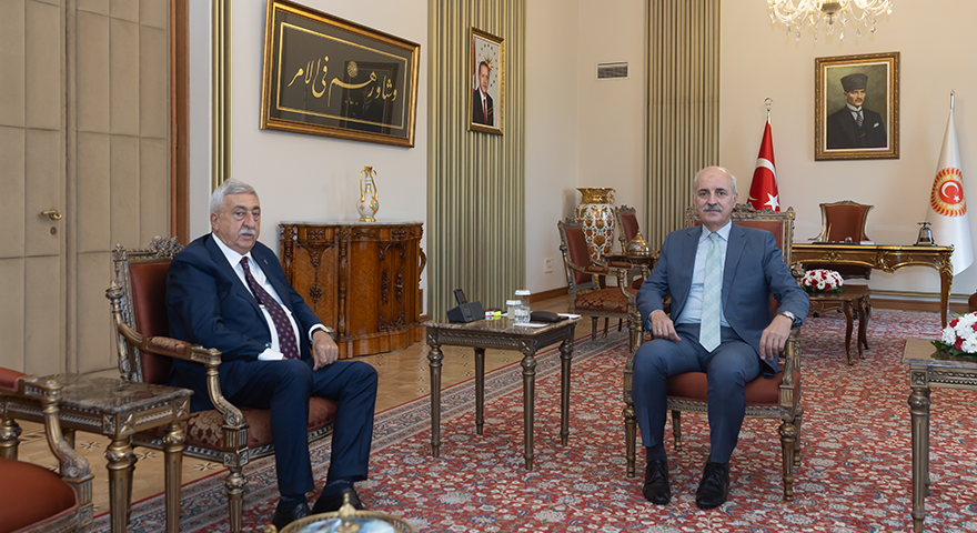 Türkiye Büyük Millet Meclisi Başkanı Numan Kurtulmuş, Türkiye Esnaf ve Sanatkarları Konfederasyonu (TESK) Genel Başkanı Bendevi Palandöken'i kabul etti.
