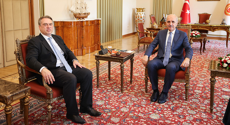 Türkiye Büyük Millet Meclisi (TBMM) Başkanı Numan Kurtulmuş, Avrupa Birliği (AB) Türkiye Delegasyonu Başkanı Büyükelçi Thomas Ossowski’yi kabul etti.