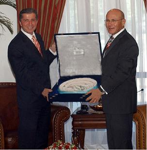 Ziyarette Talat ve Toptan, karşılıklı hediye takdimi de yaptı.